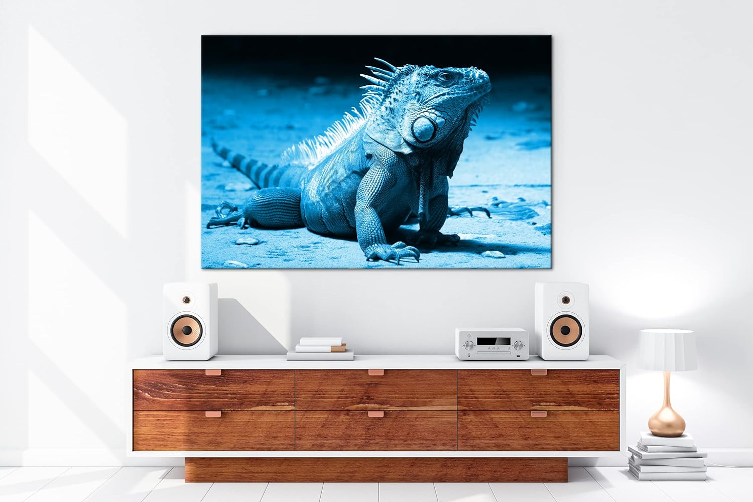 deyoli edler grüner Leguan Format: 80x60 Effekt: Monocrome Blau als Leinwand, Motiv fertig gerahmt a