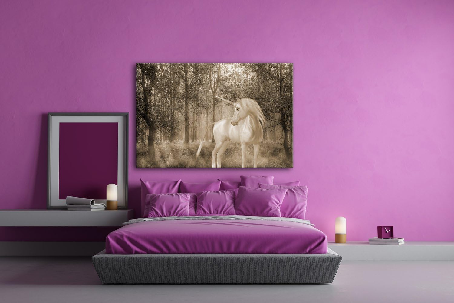 deyoli edles Einhorn im Wald Format: 80x60 Effekt: Sepia als Leinwand, Motiv fertig gerahmt auf Echt
