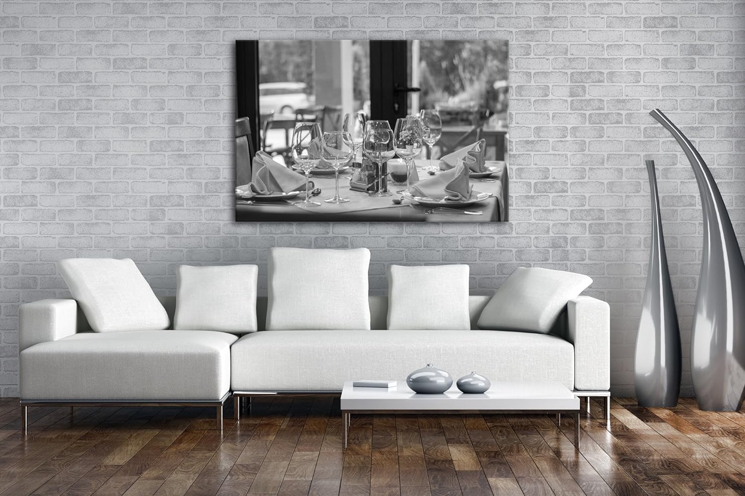 deyoli edles Restaurant Effekt: Schwarz/Weiss im Format: 80x60 als Leinwandbild, Motiv fertig gerahm