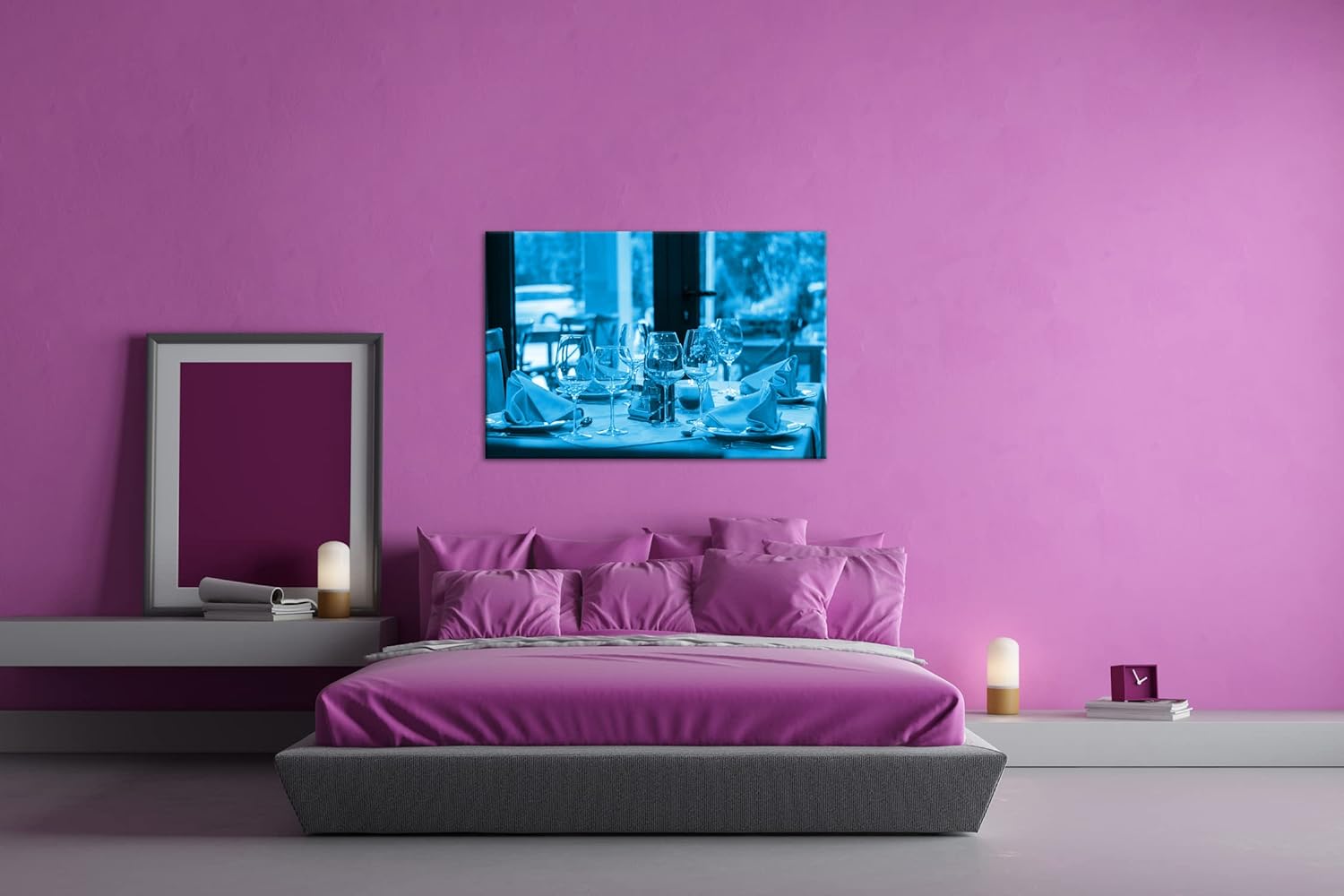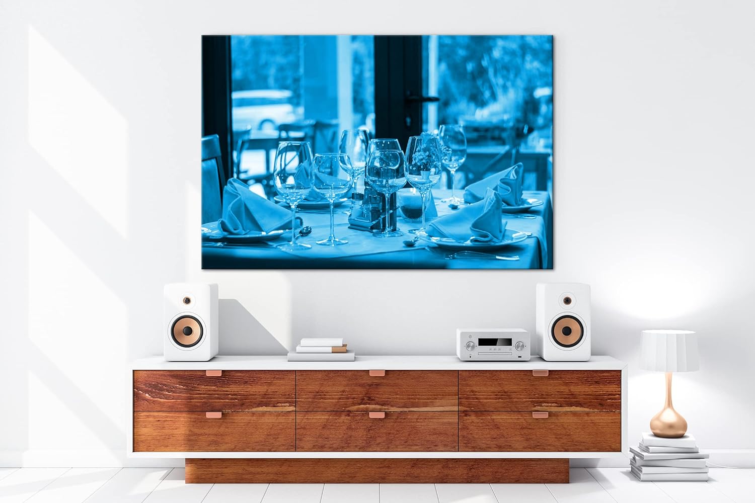 deyoli edles Restaurant Format 80x60 Effekt: Monocrome Blau als Leinwandbild, Motiv fertig gerahmt a