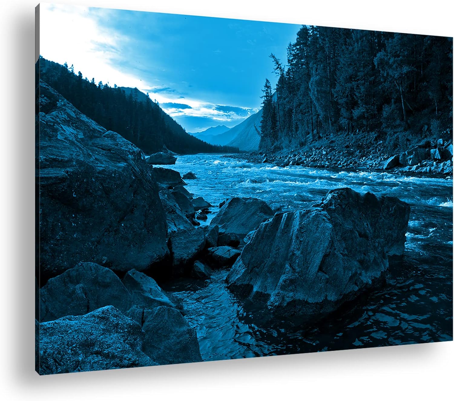 deyoli Eindrucksvoller Bach Format: 80x60 Effekt: Monocrome Blau als Leinwandbild, Motiv fertig gera