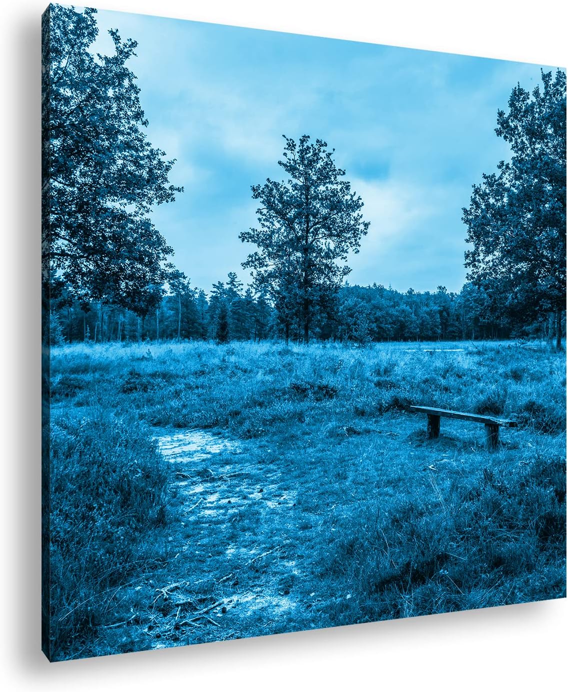 deyoli einsame Bank im Wald Format: 60x60 Effekt: Monocrome Blau als Leinwand, Motiv fertig gerahmt