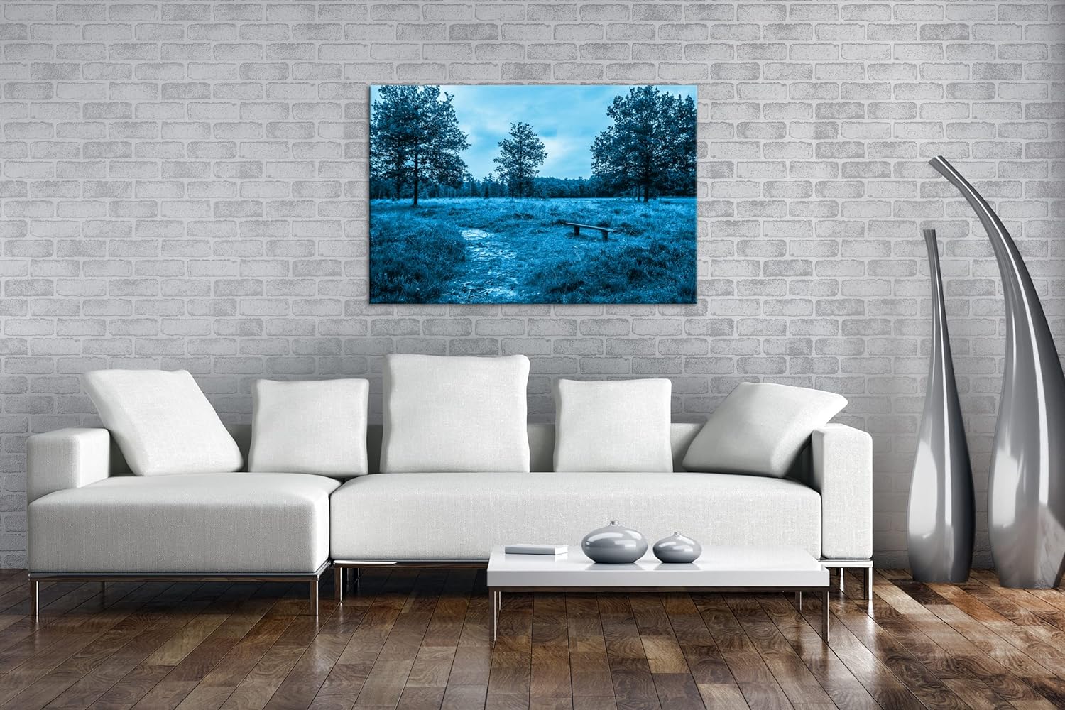 deyoli einsame Bank im Wald Format: 80x60 Effekt: Monocrome Blau als Leinwand, Motiv fertig gerahmt