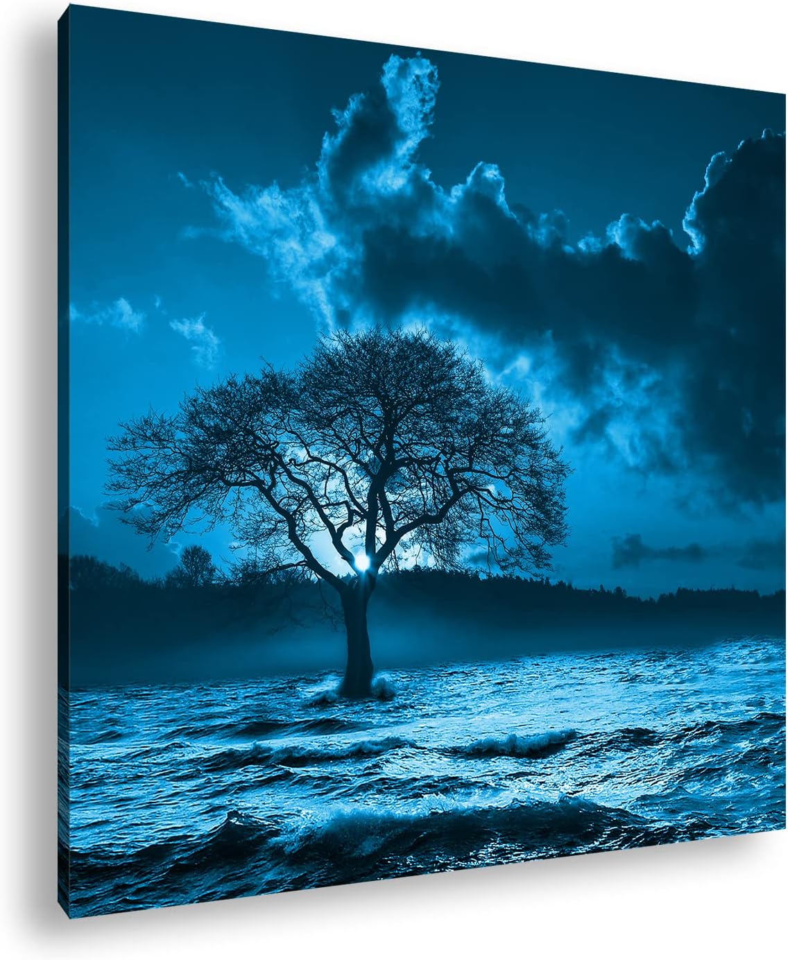 deyoli einsamer Baum im Meer Format: 70x70 Effekt: Monocrome Blau als Leinwandbild, Motiv fertig ger