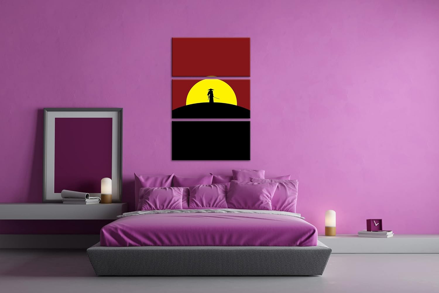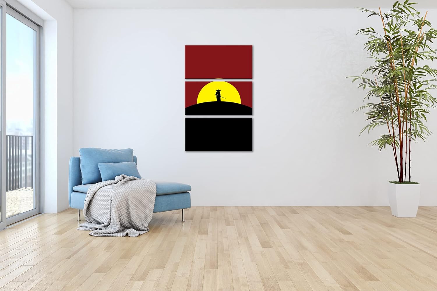 deyoli einsamer Samurai Krieger Format: 3Teilig als Leinwandbild, Motiv fertig gerahmt auf Echtholzr