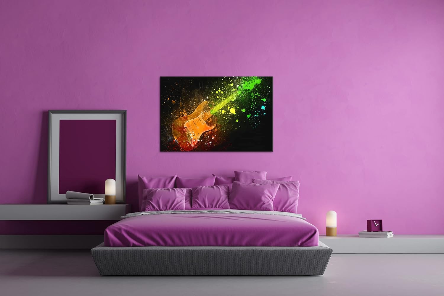 deyoli farbenfrohe Gitarre Format: 60x40 als Leinwandbild, Motiv fertig gerahmt auf Echtholzrahmen,