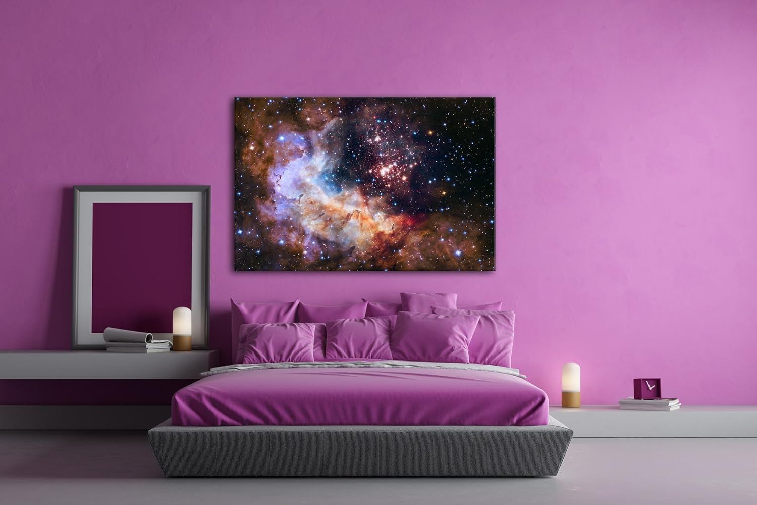 deyoli farbenprächtiger Sternencluster Format: 60x40 als Leinwandbild, Motiv fertig gerahmt auf Echt