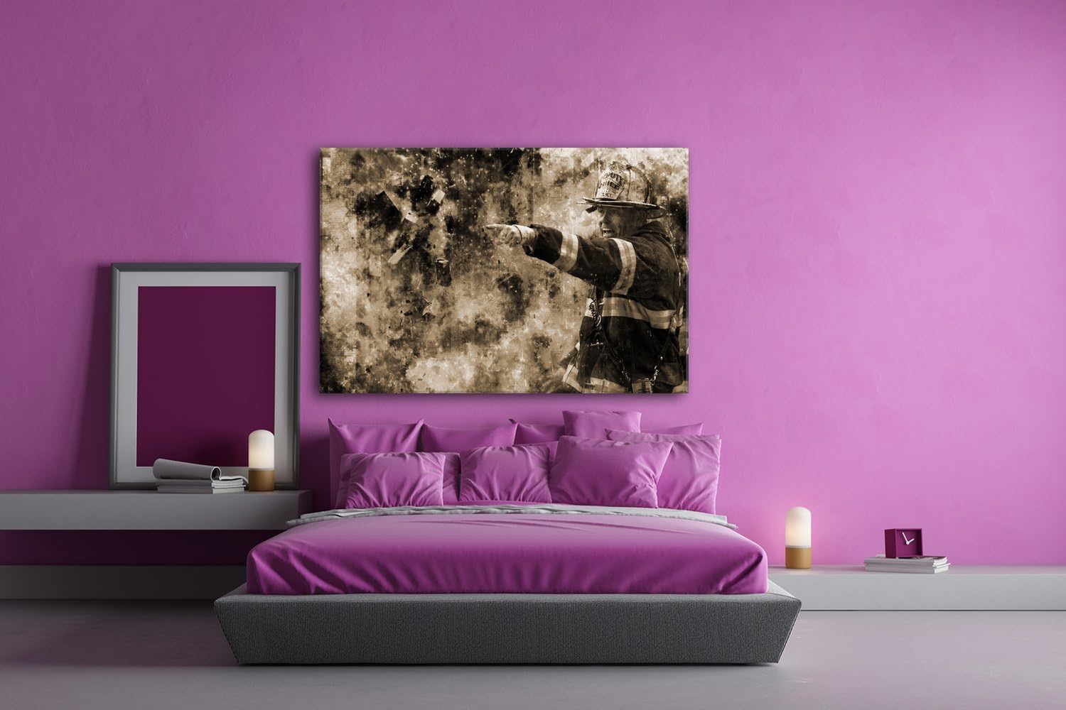 deyoli Feuerwehr Illustration Format: 80x60 Effekt: Sepia als Leinwandbild, Motiv fertig gerahmt auf