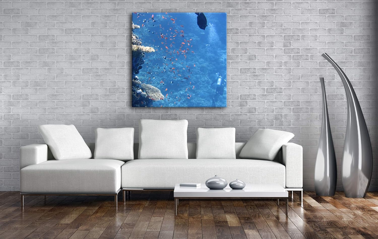 deyoli Fische an einem atemberaubenden Korallenriff Format: 70x70 als Leinwandbild, Motiv fertig ger