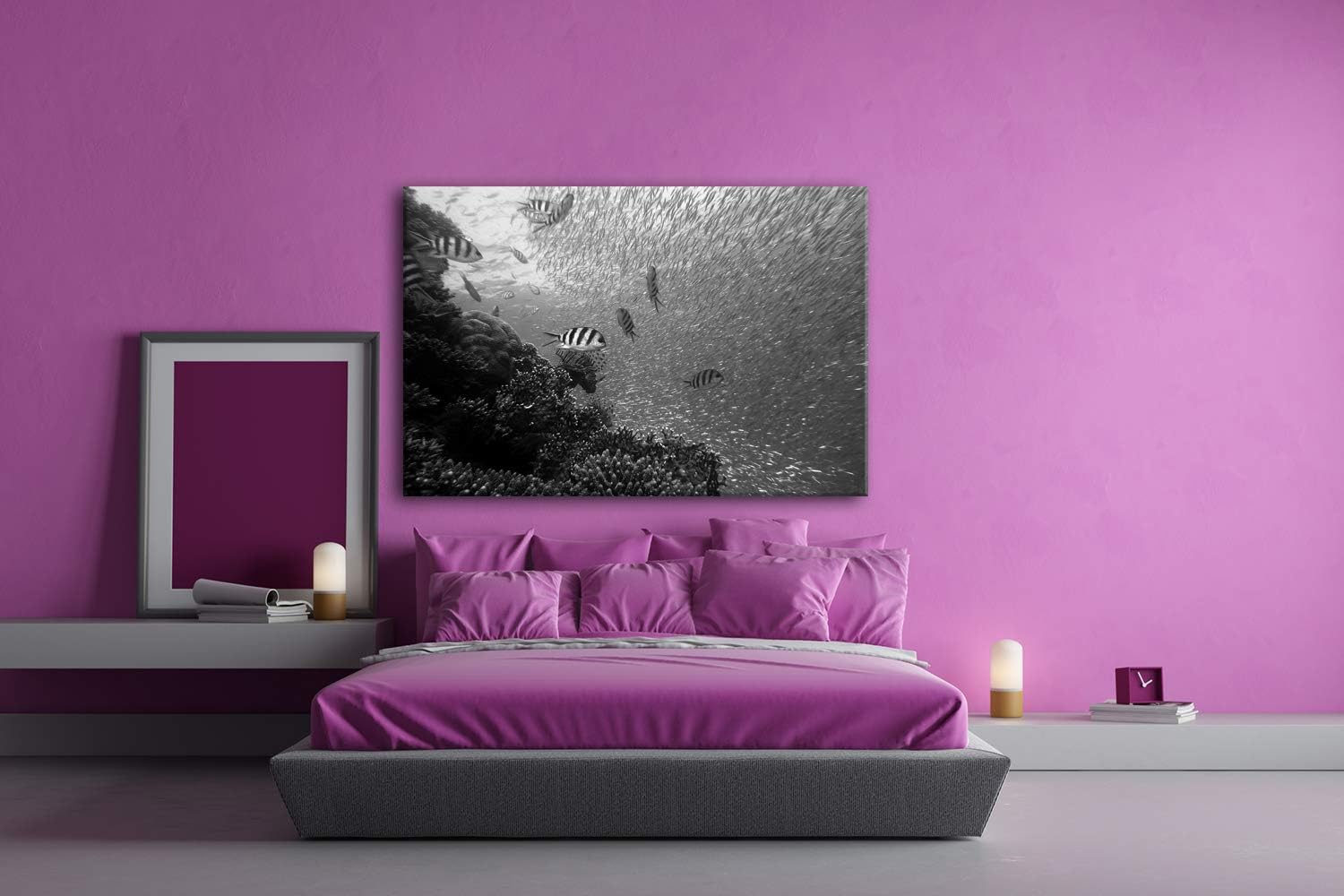 deyoli Fischschwärme im Korallenriff Format: 100x70 Effekt: Schwarz&Weiss als Leinwandbild, Motiv fe