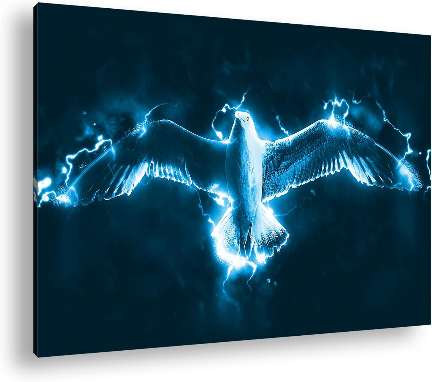 deyoli fliegende Taube unter Strom Format 80x60 Effekt: Monocrome Blau als Leinwandbild, Motiv ferti