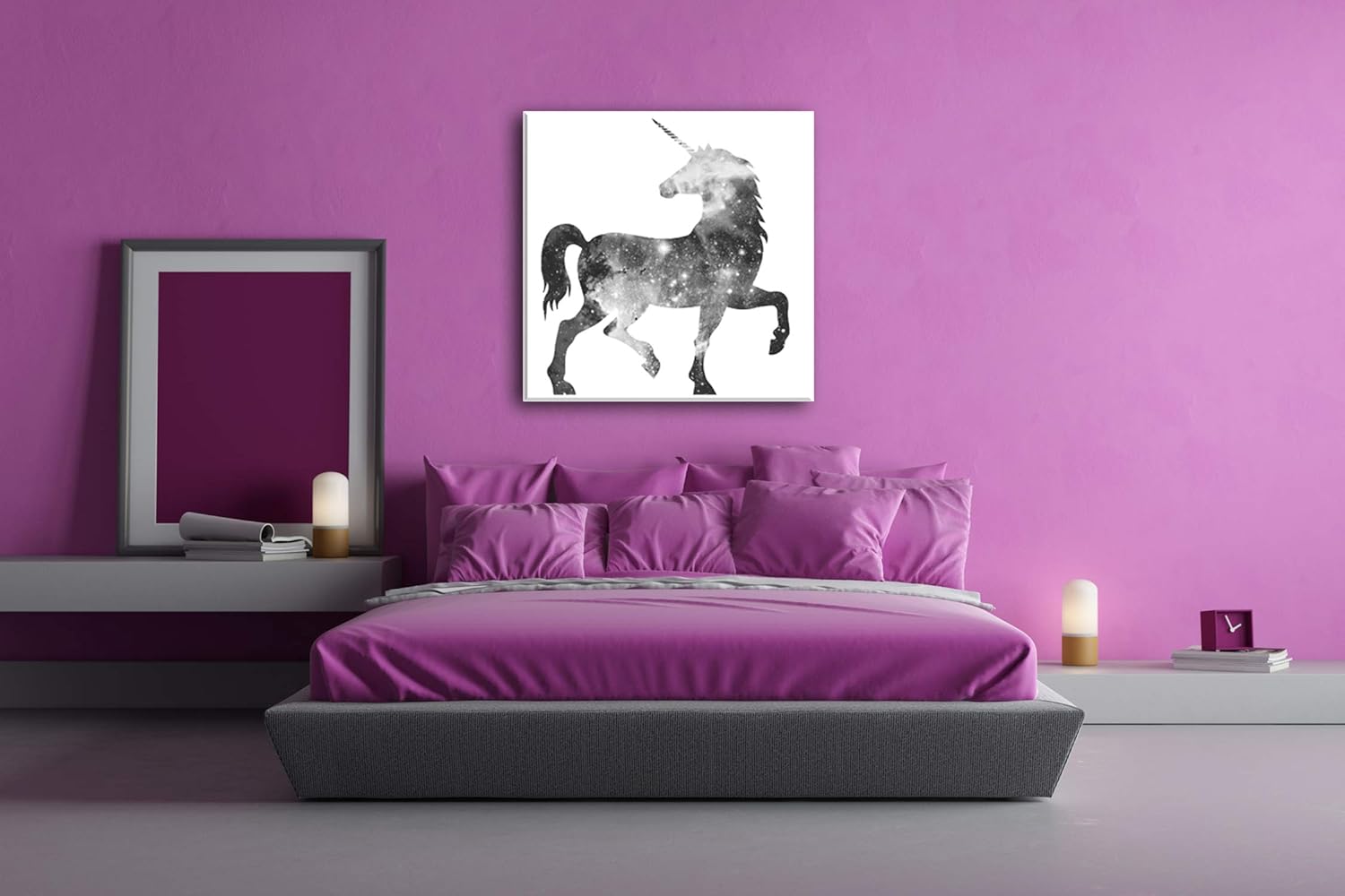 deyoli Galaxie-Einhorn Format: 60x60 Effekt: Schwarz&Weiss als Leinwandbild, Motiv fertig gerahmt au