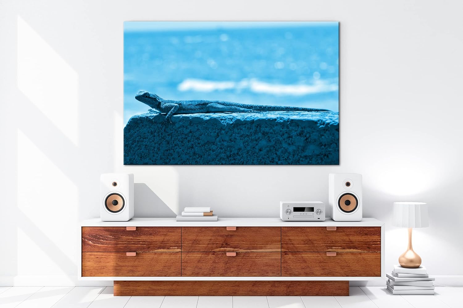 deyoli Gecko sonnt sich Format 100x70 Effekt: Monocrome Blau als Leinwandbild, Motiv fertig gerahmt