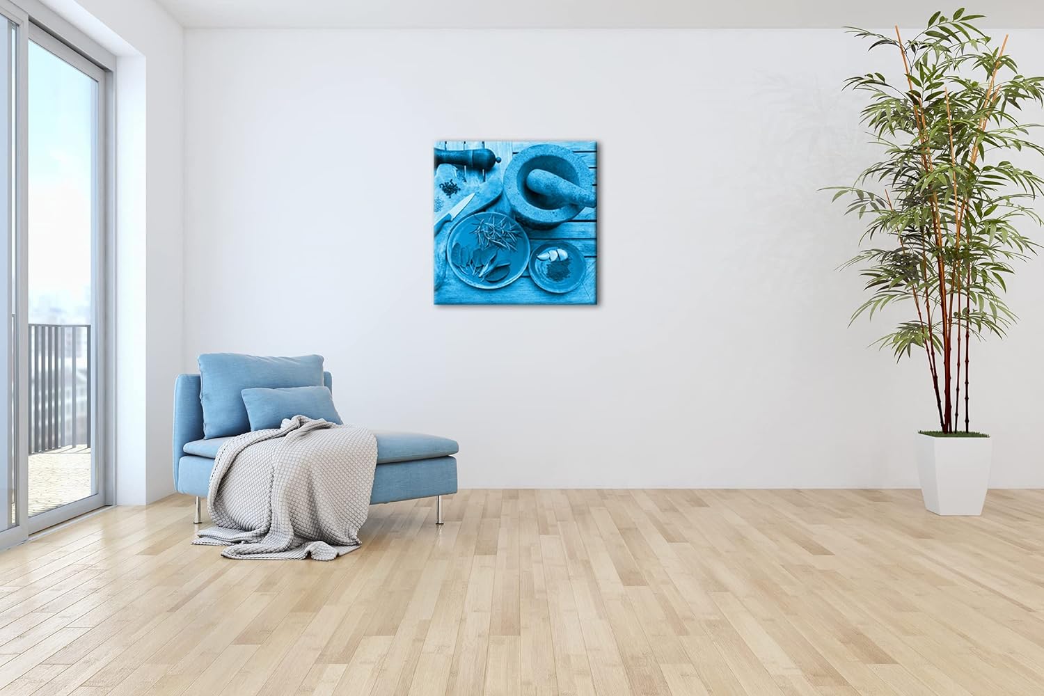 deyoli Gewürze mit einem Mörser Format: 60x60 Effekt: Monocrome Blau als Leinwandbild, Motiv fertig