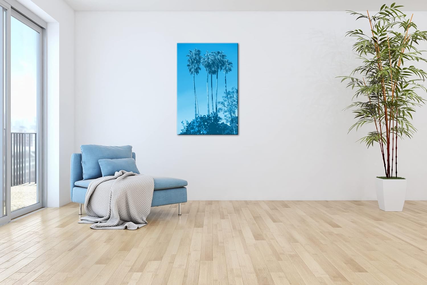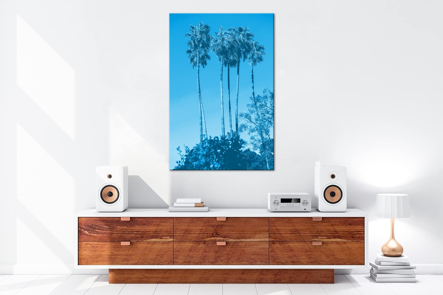deyoli gigantische Tropische Palmen Format 100x70 Effekt: Monocrome Blau als Leinwandbild, Motiv fer
