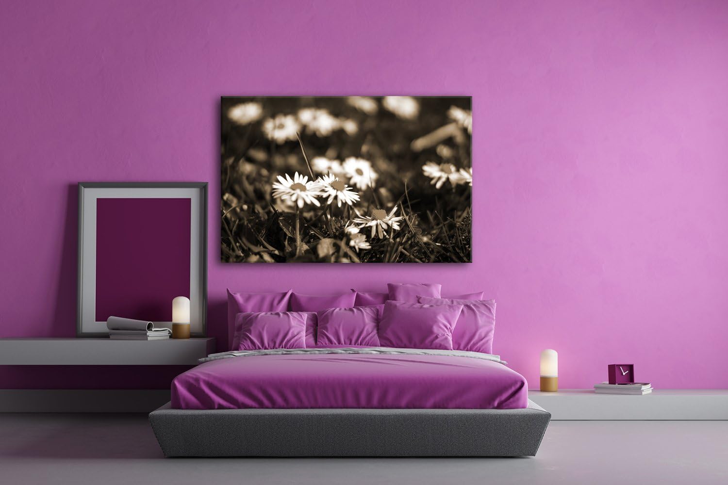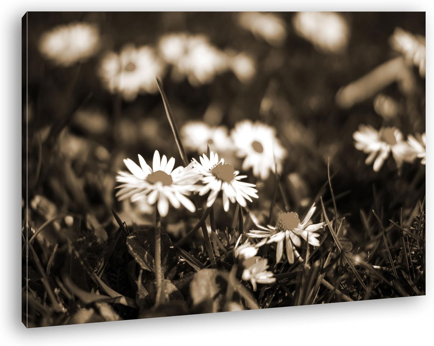 deyoli Gänseblümchen auf schöner Wiese Format: 80x60 Effekt: Sepia als Leinwandbild, Motiv fertig ge