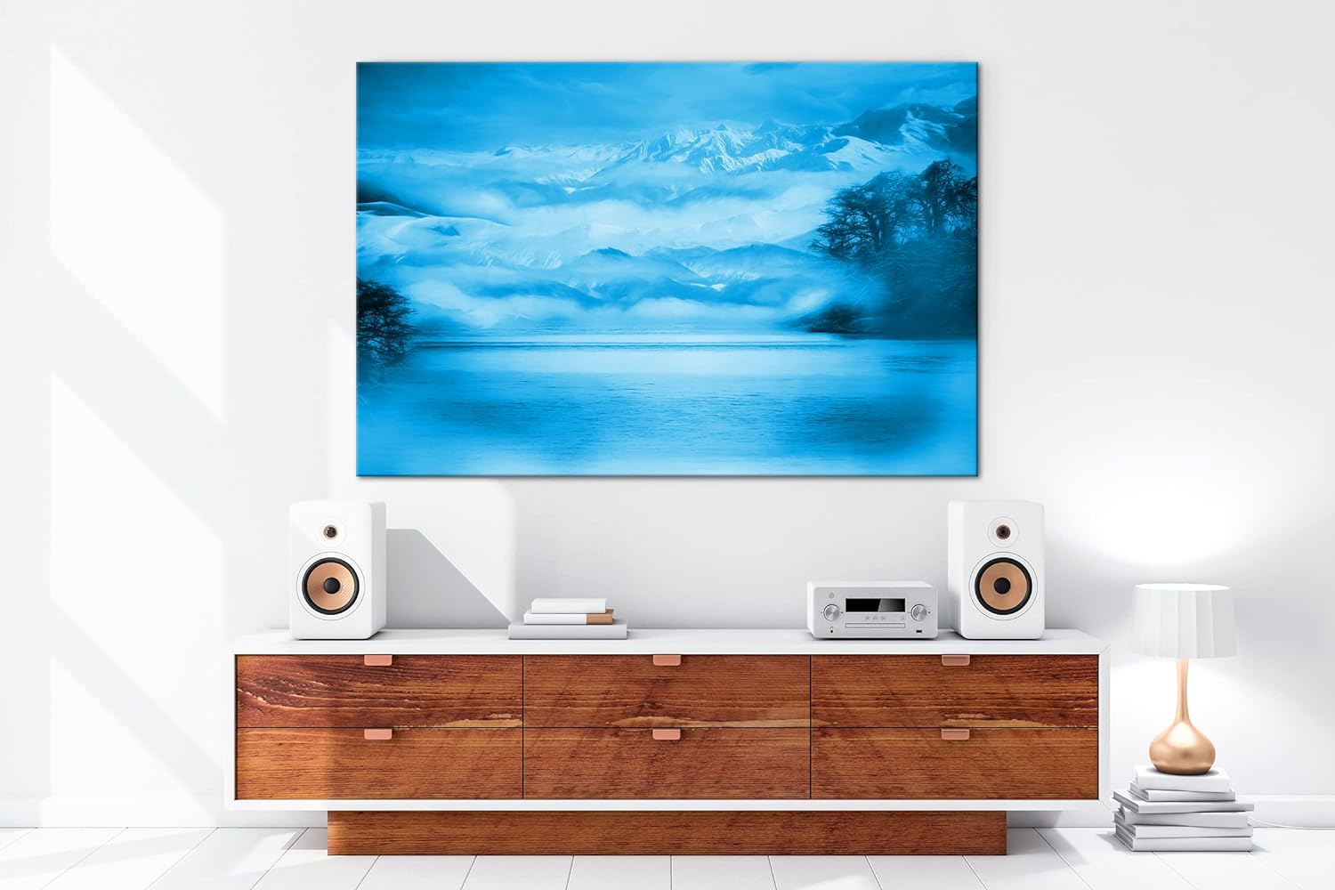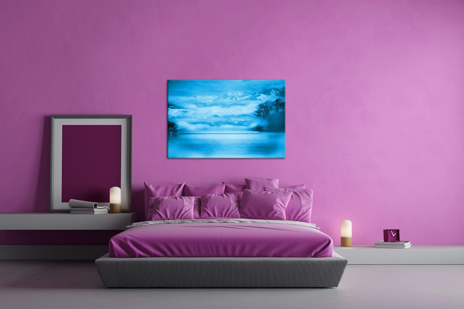 deyoli grossartige gemalte Berglandschaft Format 80x60 Effekt: Monocrome Blau als Leinwandbild, Moti
