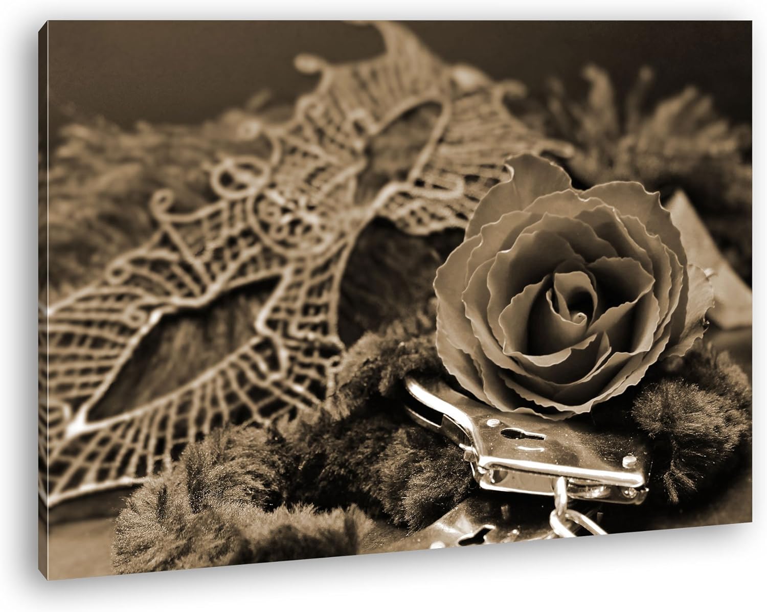 deyoli Handschellen Maske und eine Rose Format: 80x60 Effekt: Sepia als Leinwand, Motiv fertig gerah