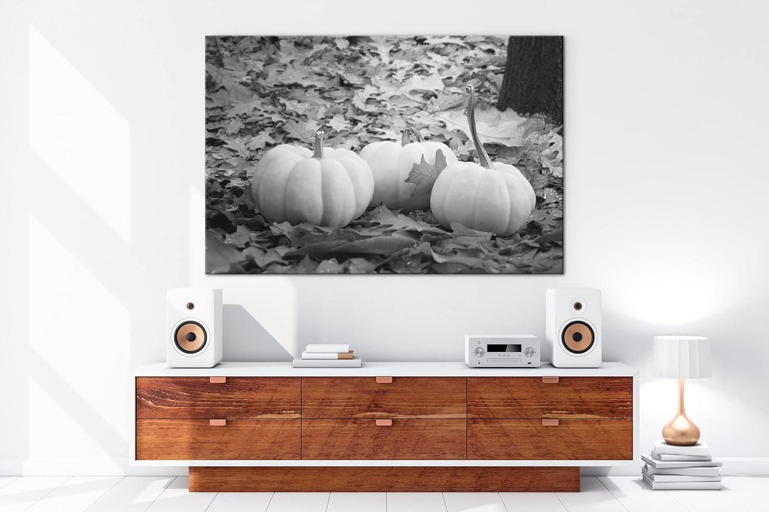 deyoli Herbstliche Kürbise Effekt: Schwarz&Weiss Format: 120x80 als Leinwandbild, Motiv fertig gerah