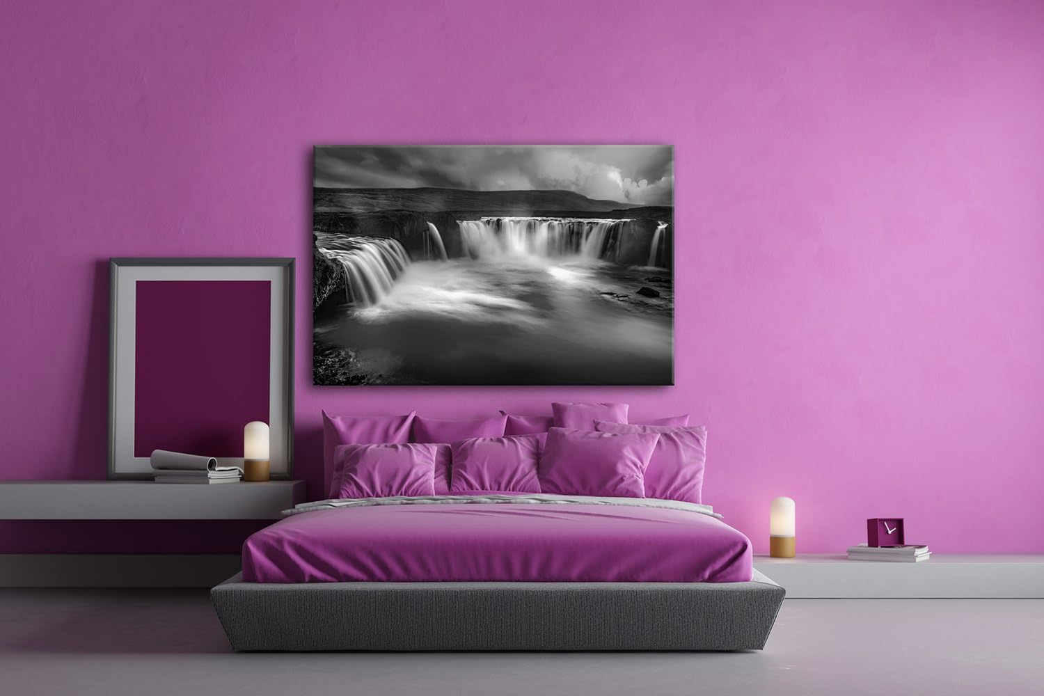 deyoli himmlische Wasserfälle in Island Format: 80x60 Effekt: Schwarz/Weiss als Leinwand, Motiv fert