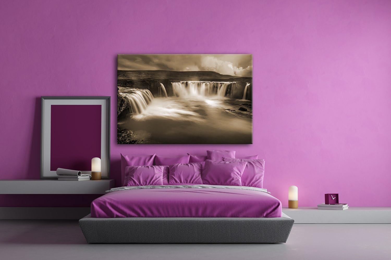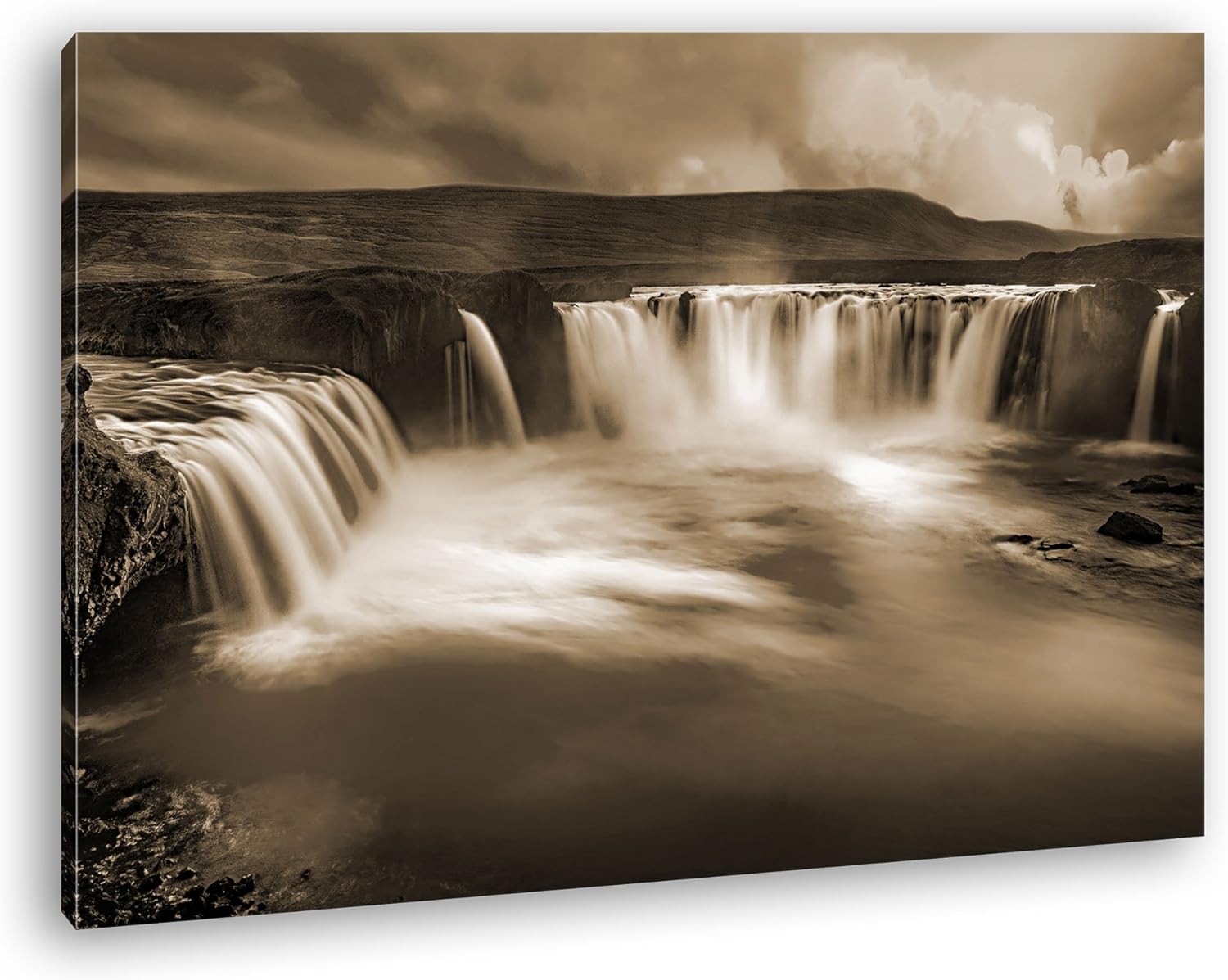 deyoli himmlische Wasserfälle in Island Format: 80x60 Effekt: Sepia als Leinwand, Motiv fertig gerah
