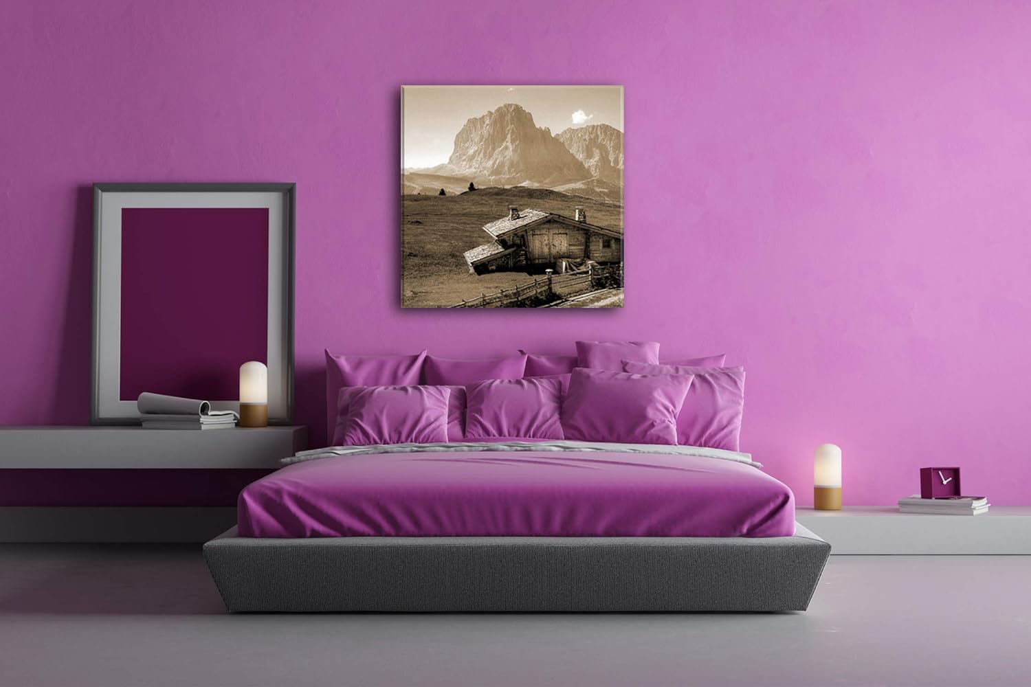 deyoli Holzhütte im Gebirge Format: 70x70 Effekt: Sepia als Leinwandbild, Motiv fertig gerahmt auf E