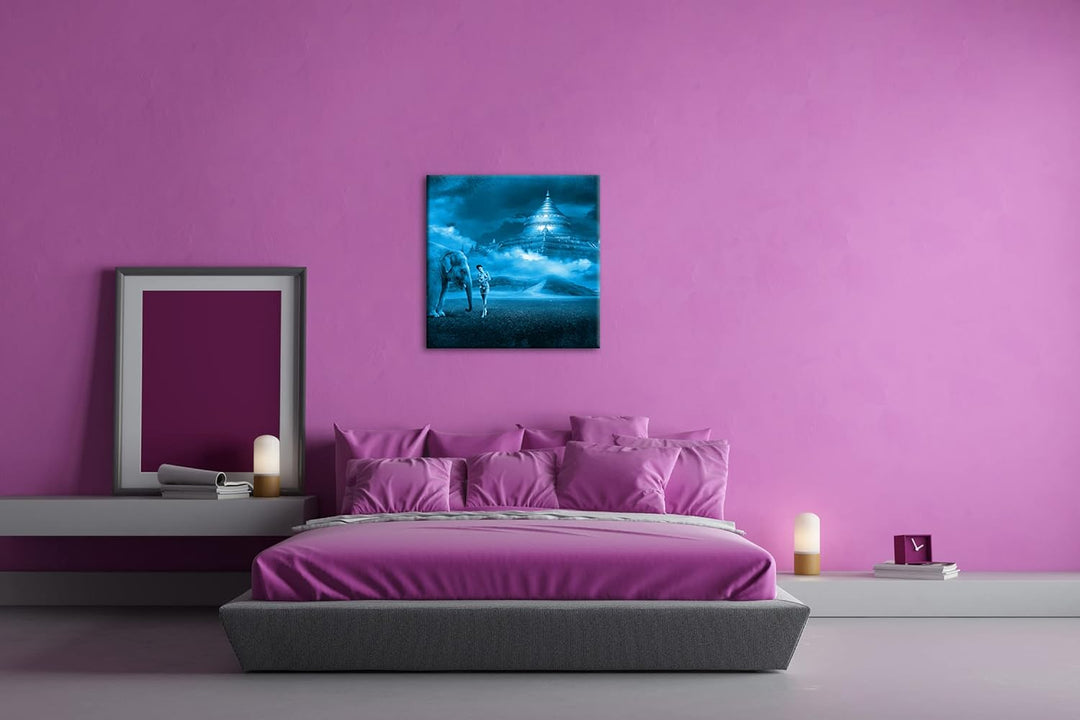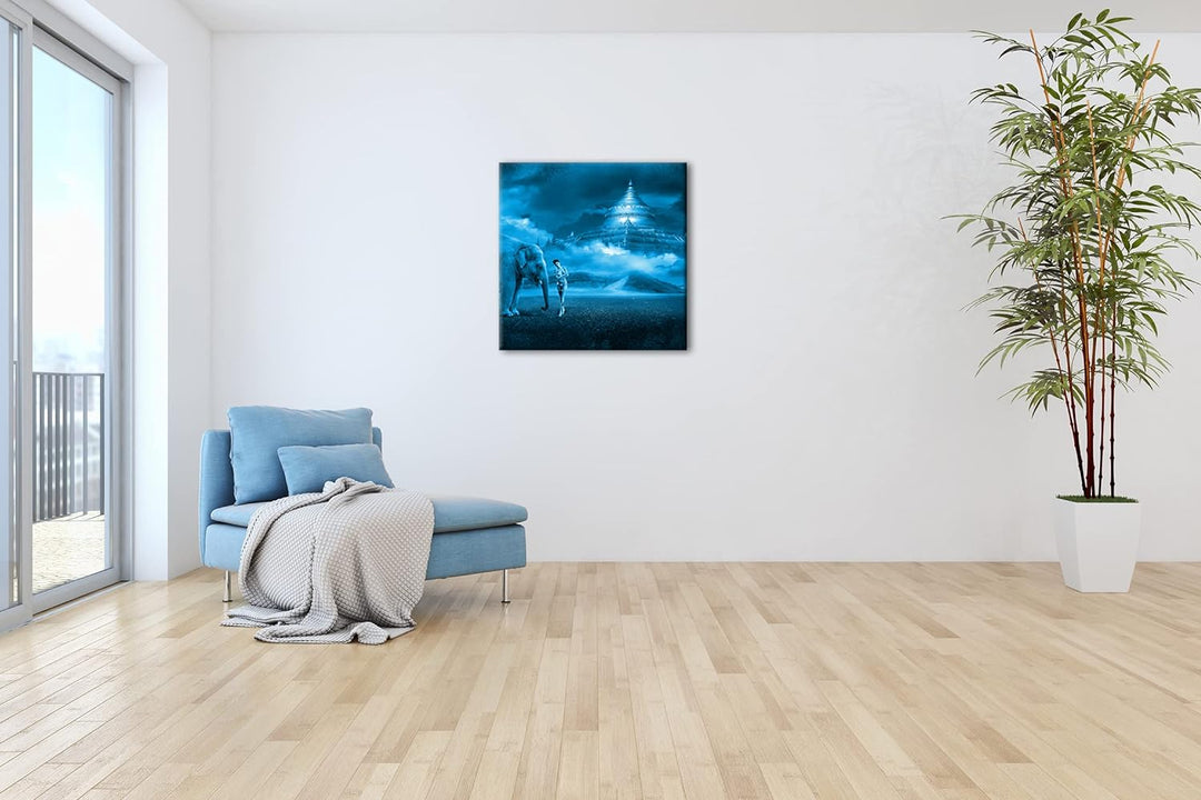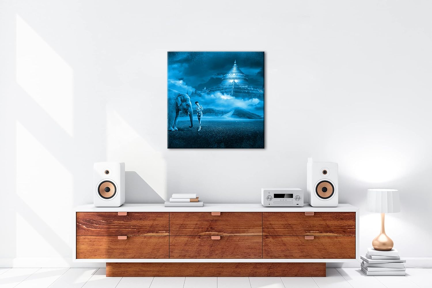 deyoli Indischer Palast Format: 40x40 cm Effekt: Monocrome Blau als Leinwandbild, Motiv fertig gerah