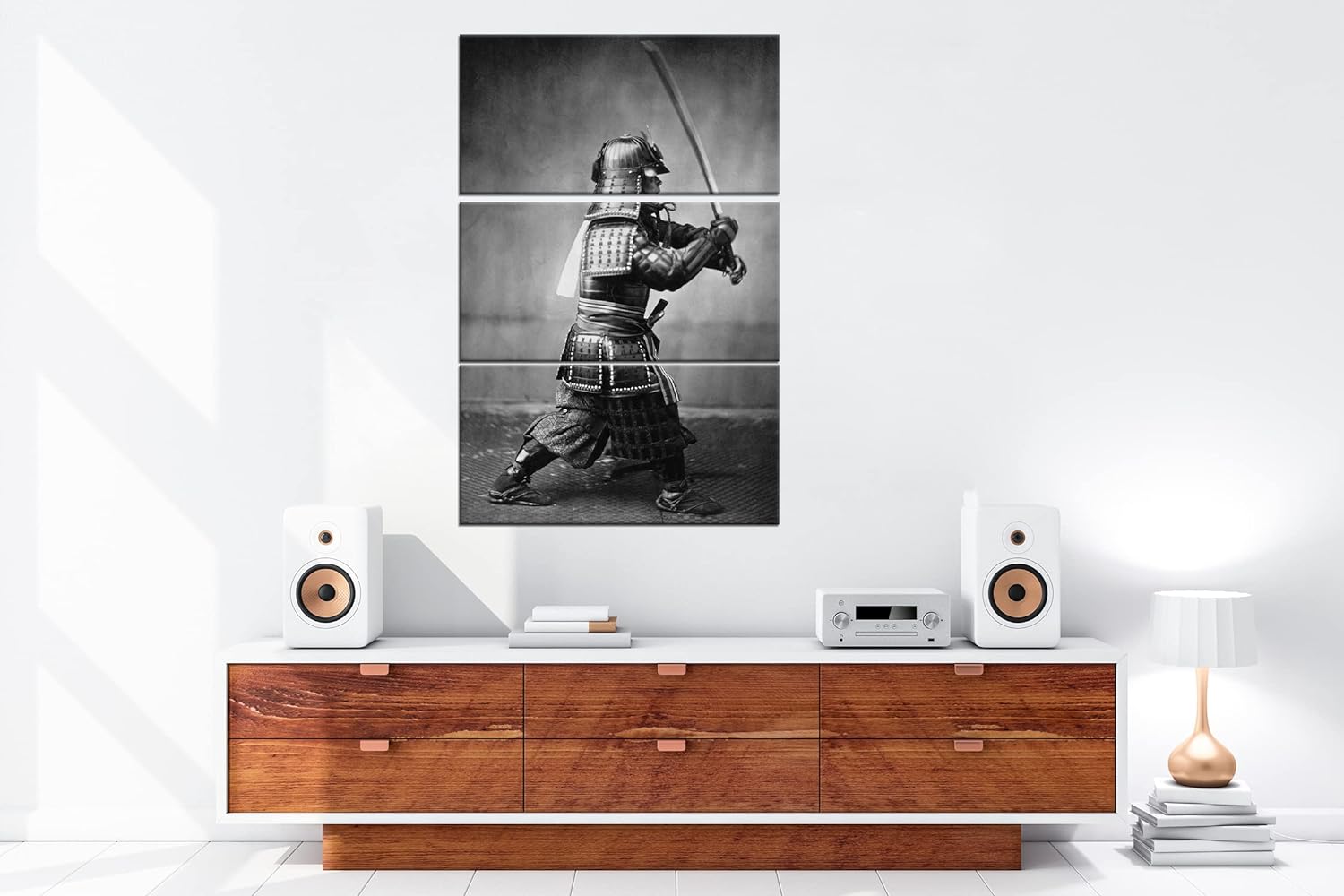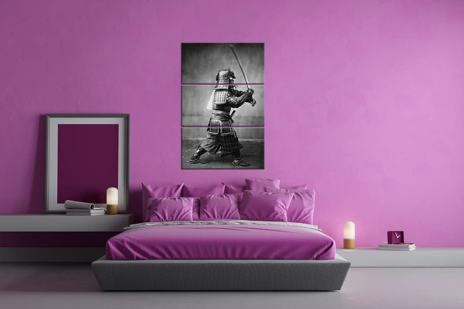 deyoli kampfbereiter Samurai-Krieger Format: 3Teilig als Leinwandbild, Motiv fertig gerahmt auf Echt
