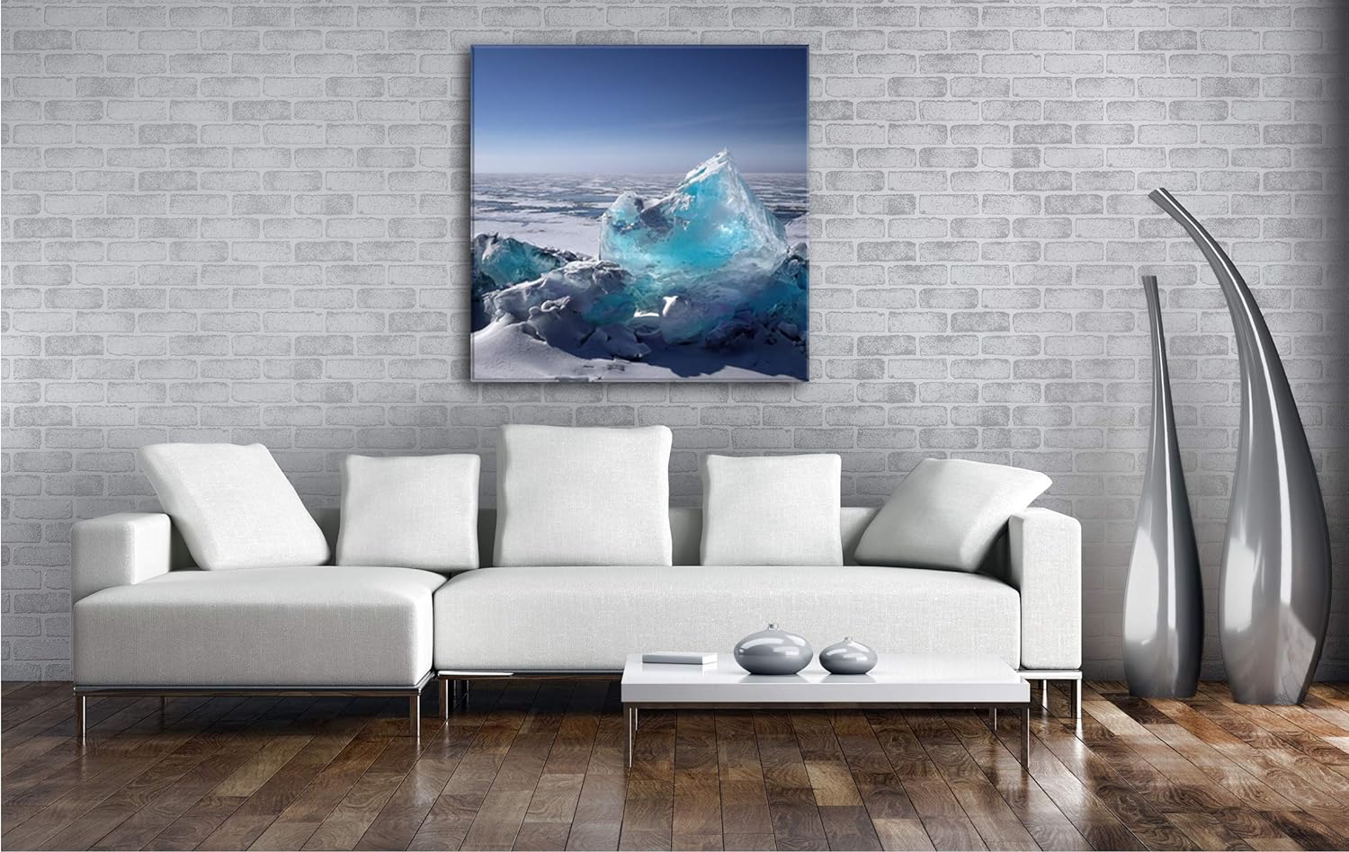 deyoli klares EIS am Nordpol Format: 70x70 als Leinwand, Motiv fertig gerahmt auf Echtholzrahmen, Ho
