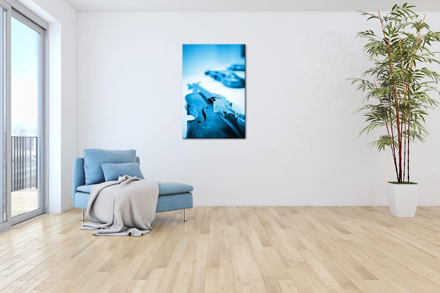 deyoli klassische Geigen und Violinen Format 80x60 Effekt: Monocrome Blau als Leinwandbild, Motiv fe