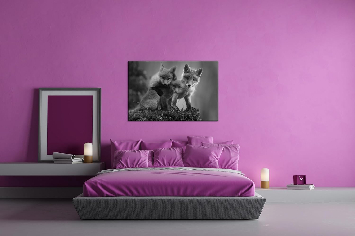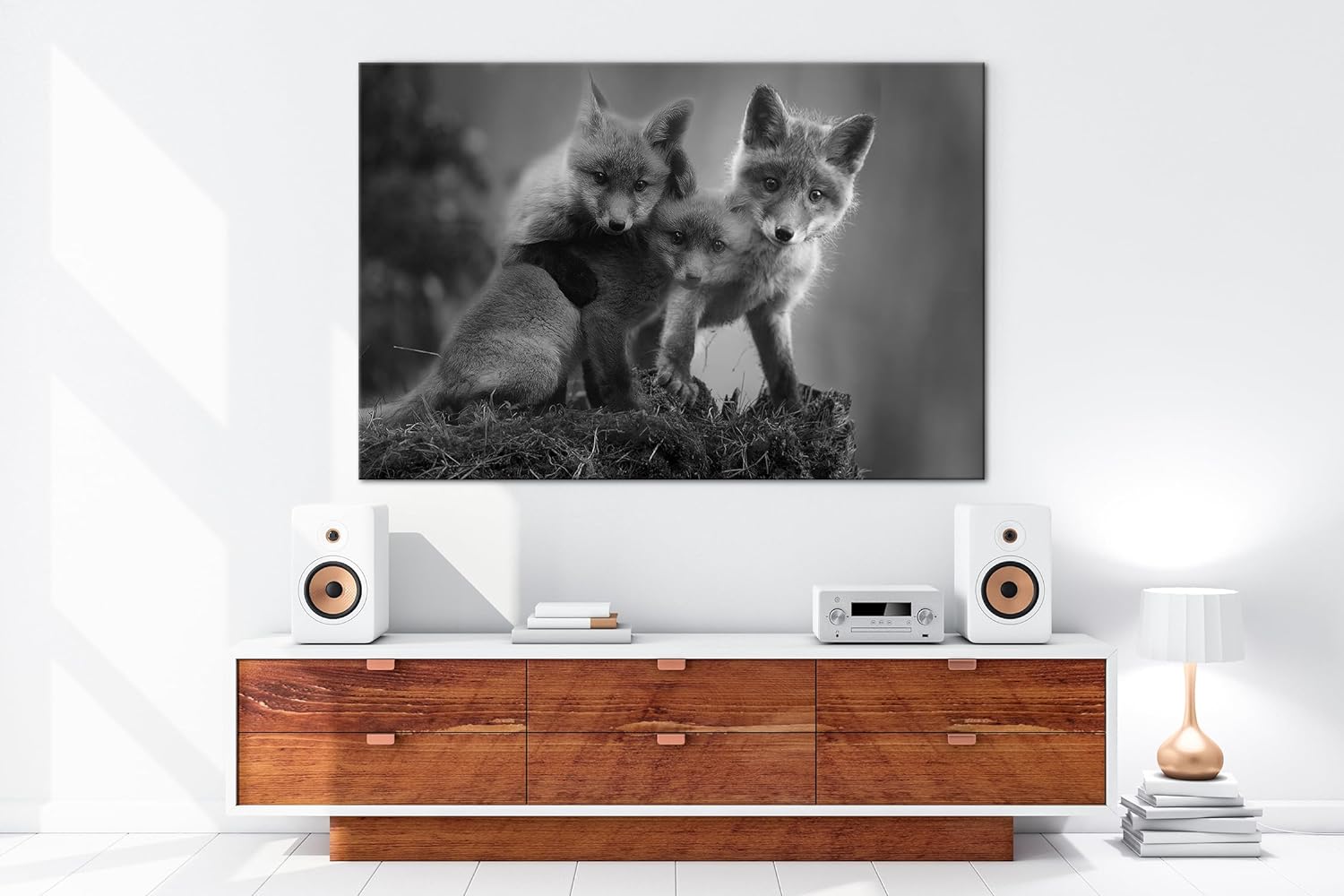 deyoli Kleine Familie von Rotfüchsen Format: 80x60 Effekt: Monocrome Blau als Leinwand, Motiv fertig