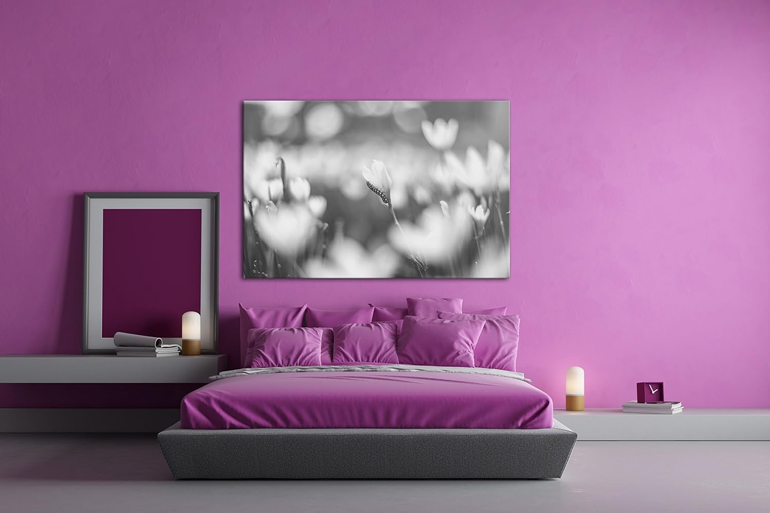 deyoli kleine Raupe auf Einer weissen Blume Effekt: Schwarz/Weiss Format: 120x80 als Leinwand, Motiv