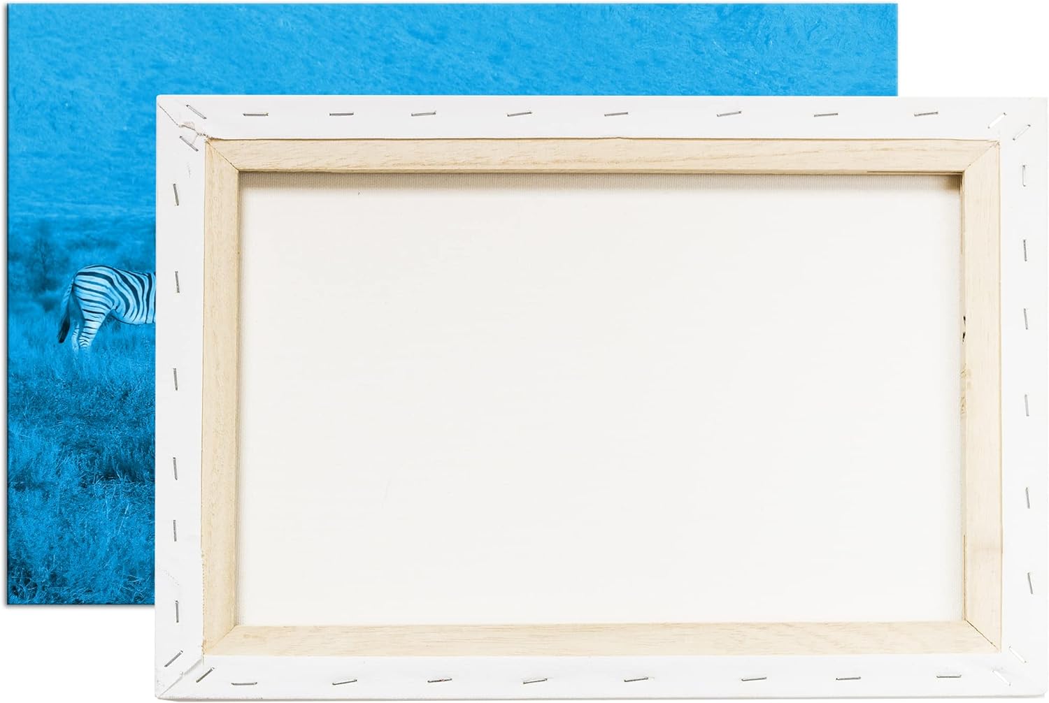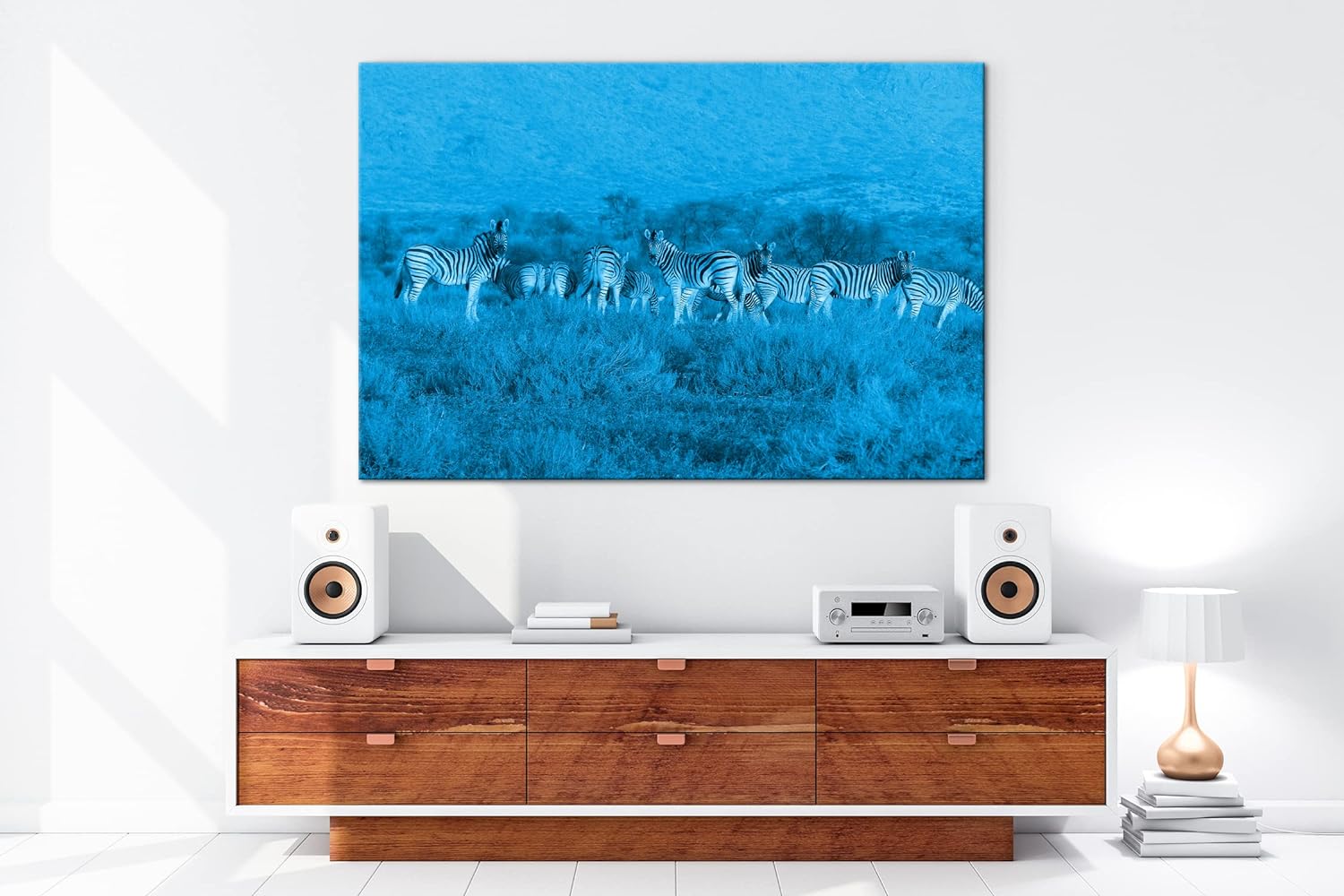 deyoli kleine Zebra Gruppe in der Savanne Format 80x60 Effekt: Monocrome Blau als Leinwandbild, Moti