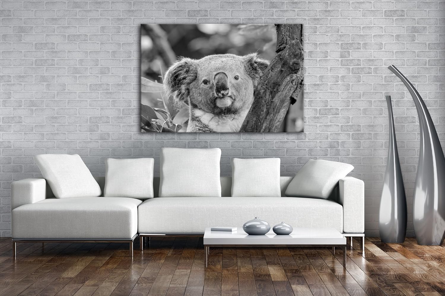 deyoli kleiner Süsser Koala Effekt: Schwarz/Weiss Format: 100x70 als Leinwandbild, Motiv fertig gera