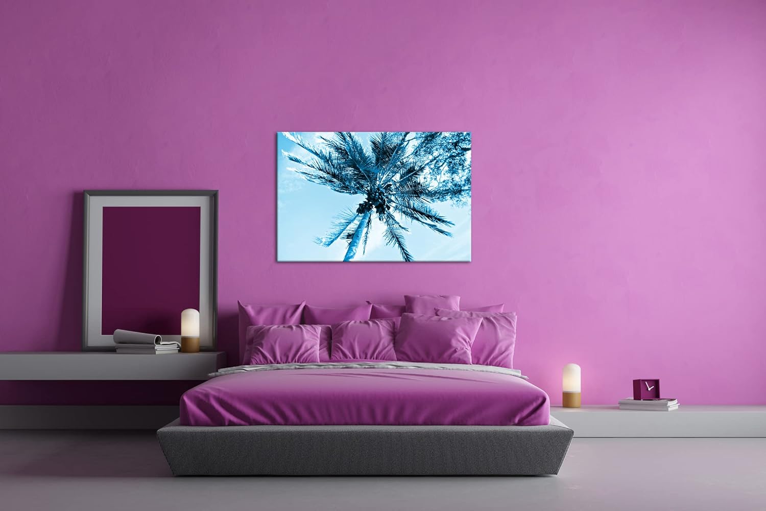 deyoli Kokosnüsse an einer tropischen Palme Format 80x60 Effekt: Monocrome Blau als Leinwandbild, Mo