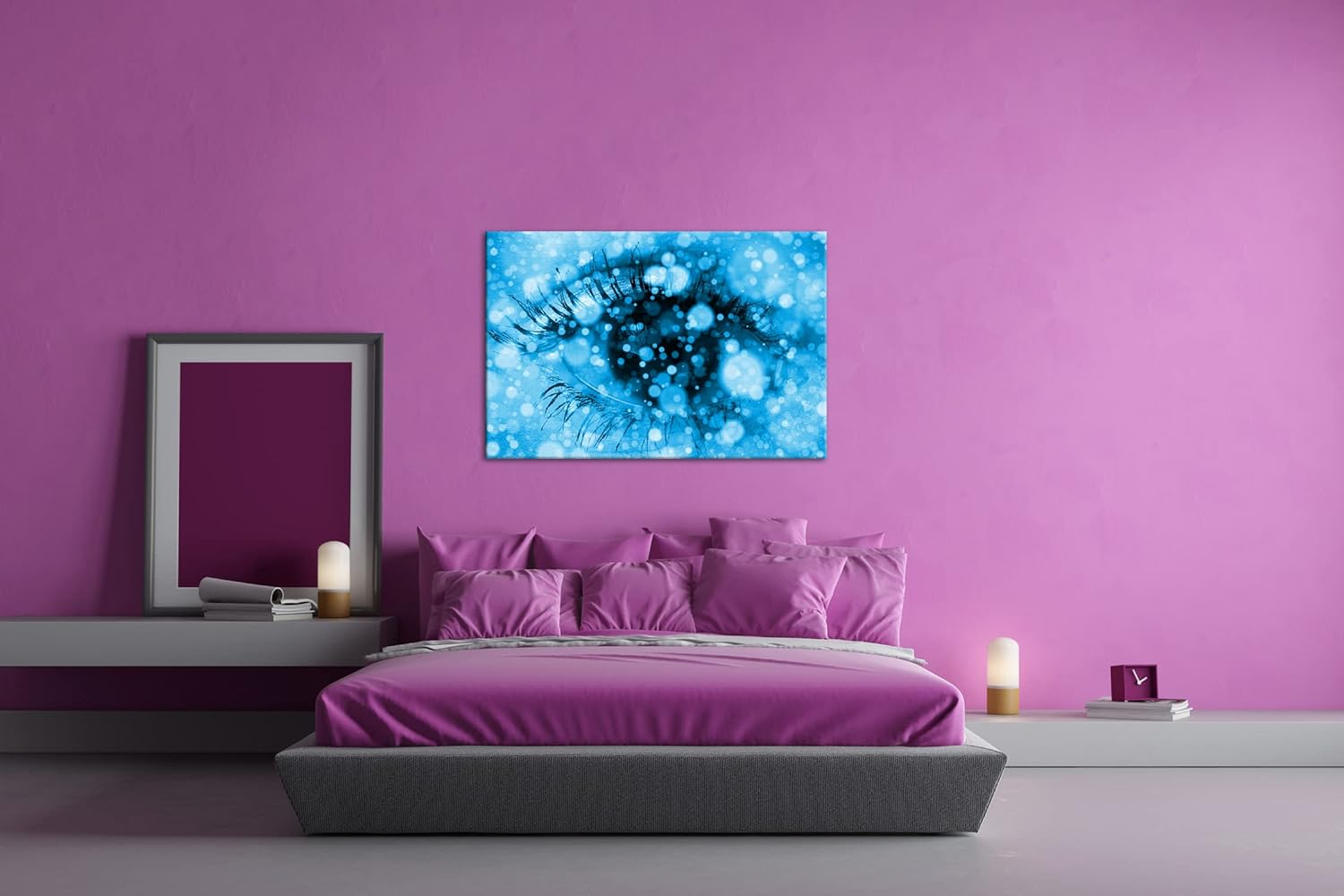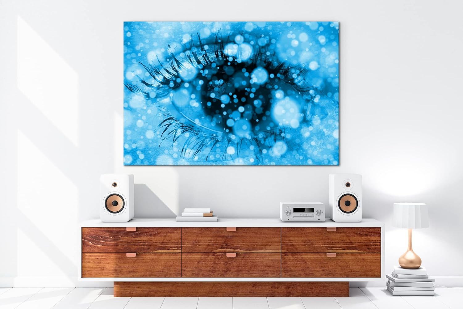 deyoli kunterbuntes Auge Format 100x70 Effekt: Monocrome Blau als Leinwandbild, Motiv fertig gerahmt