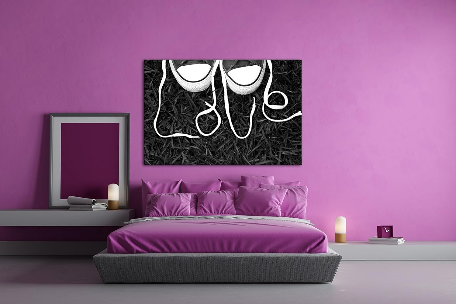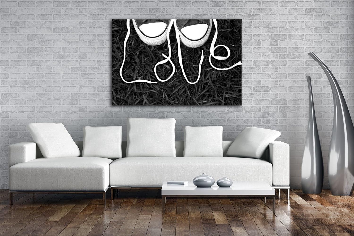 deyoli Love Sneaker Schnürsenkel Effekt: Schwarz/Weiss Format: 100x70 als Leinwandbild, Motiv fertig