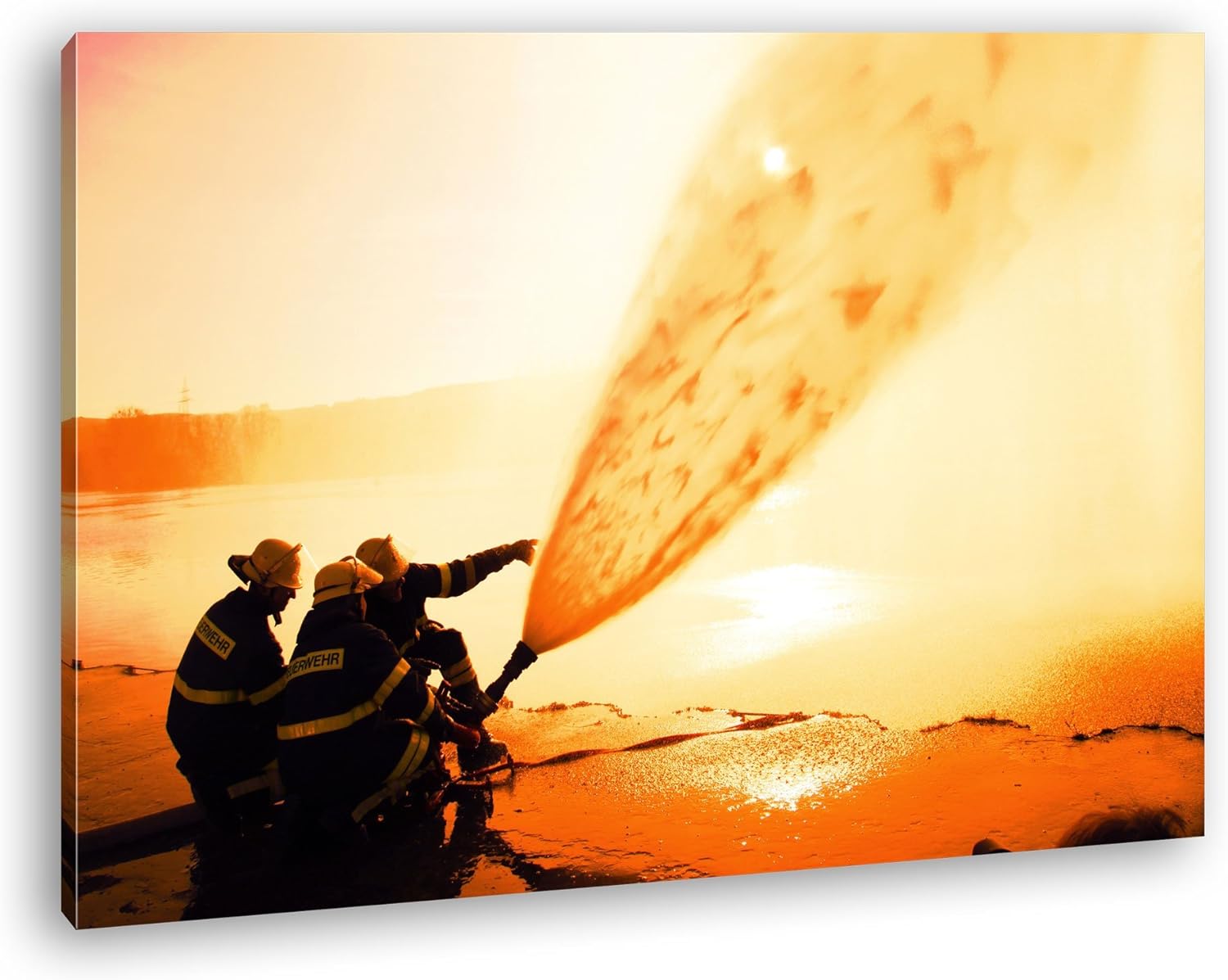 deyoli Löscharbeiten bei Feuer Format: 80x60 als Leinwandbild, Motiv fertig gerahmt auf Echtholzrahm