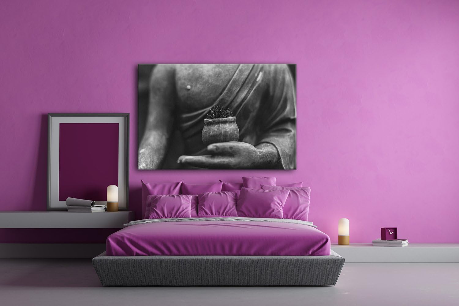 deyoli Meditierende Buddha Statue Format: 80x60 Effekt: Schwarz/Weiss als Leinwandbild, Motiv fertig