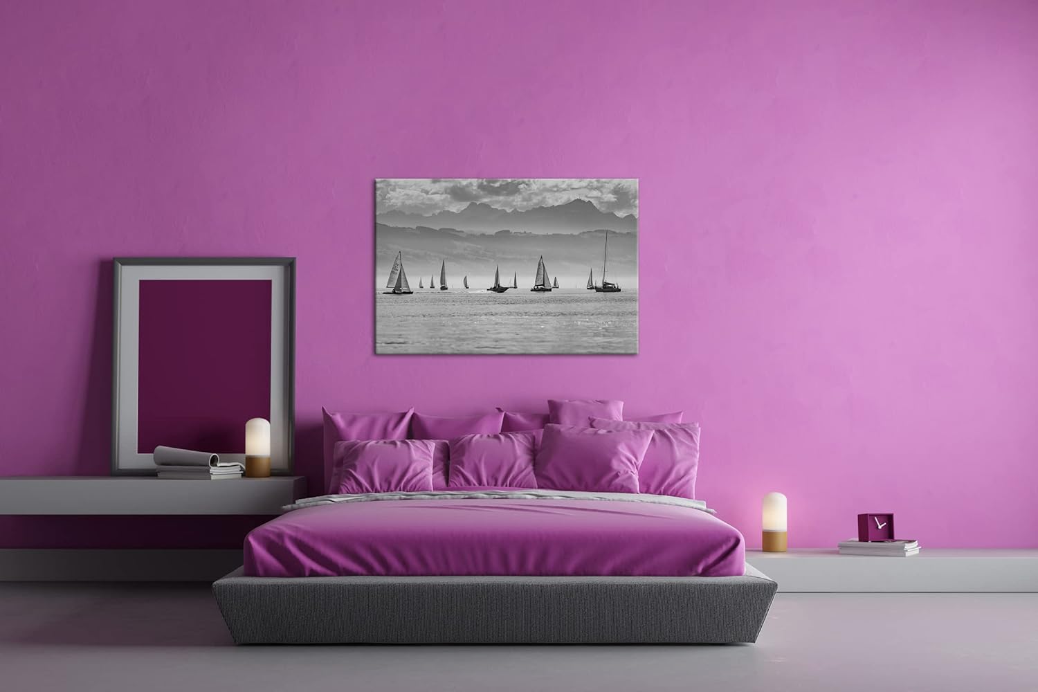 deyoli Meer voller Segelboote Format: 60x40 als Leinwand, Effekt: Schwarz&Weiss, Motiv fertig gerahm