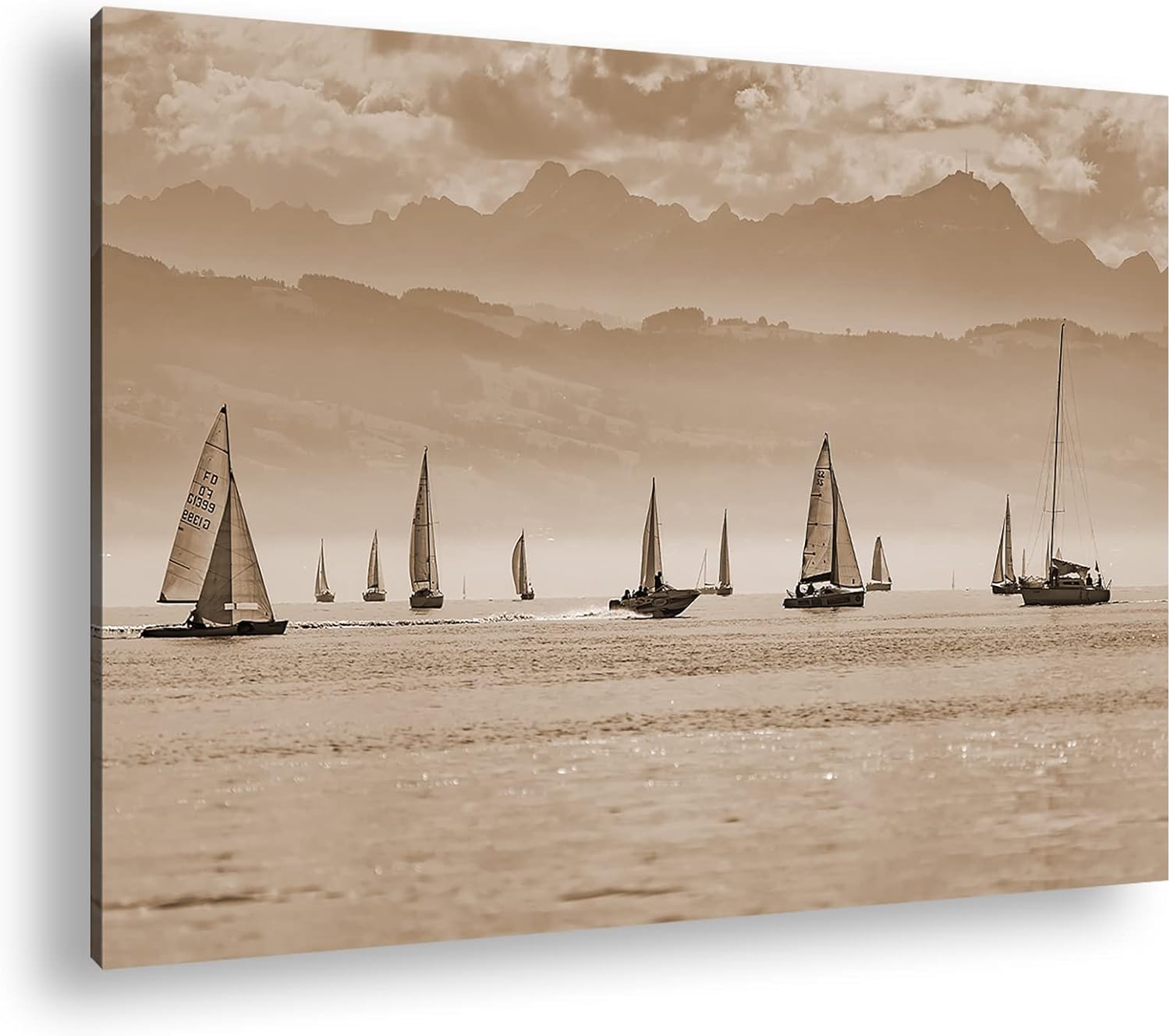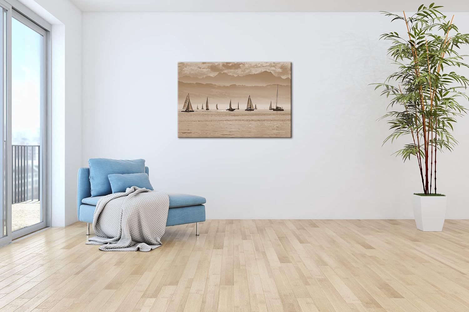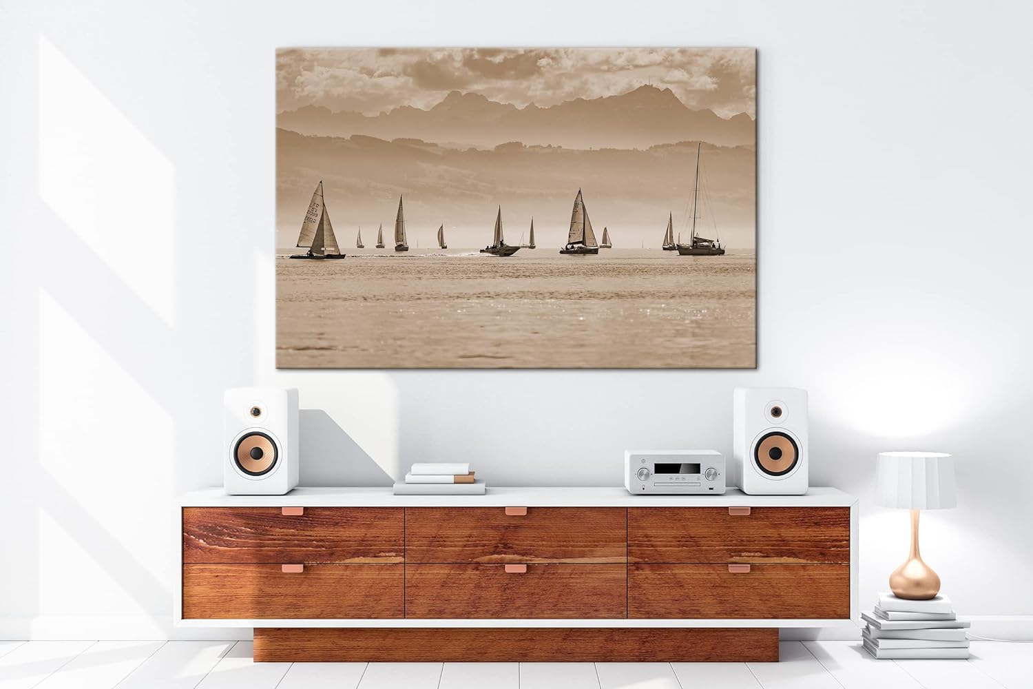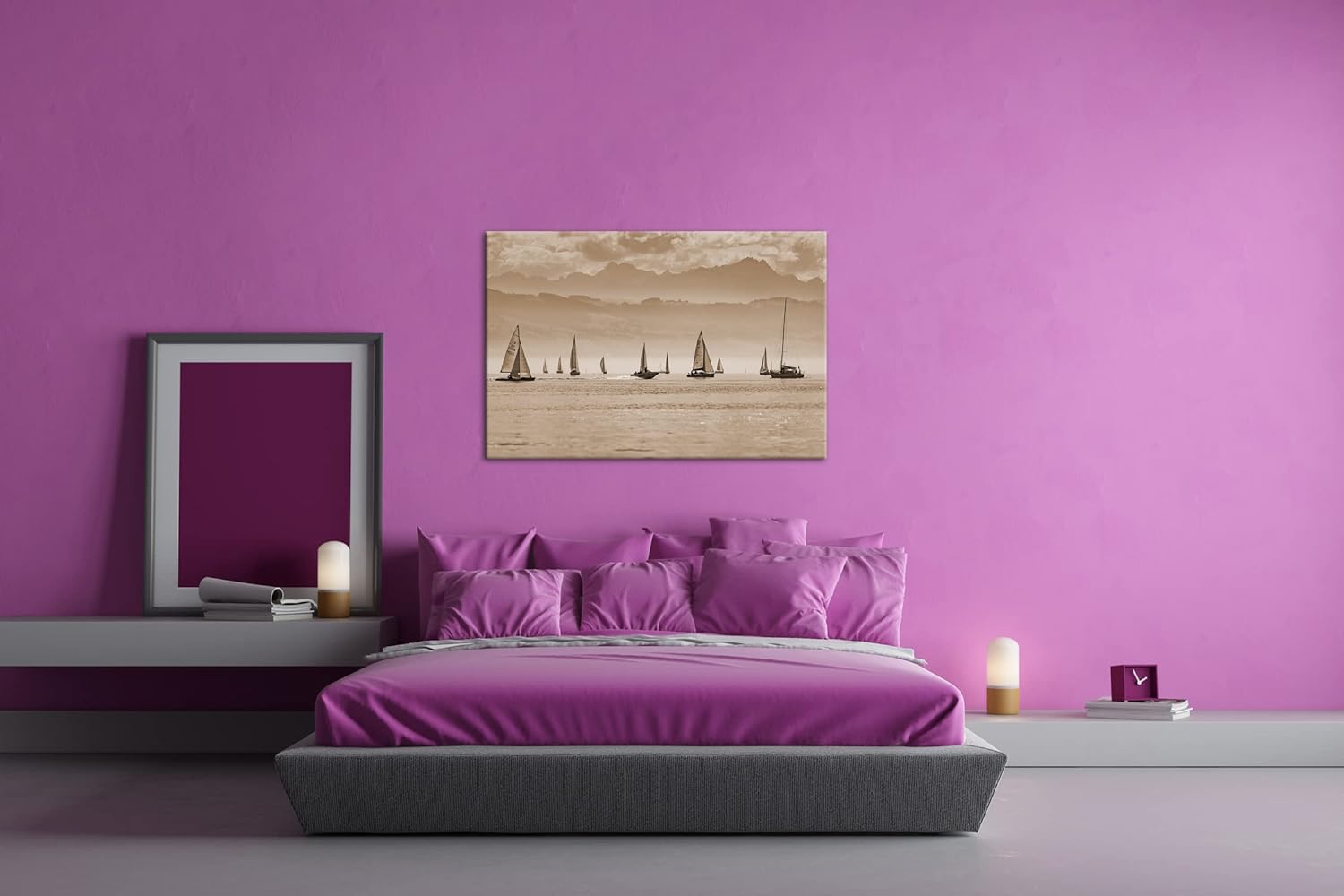 deyoli Meer voller Segelboote Format: 60x40 als Leinwand, Effekt: Sepia, Motiv fertig gerahmt auf Ec