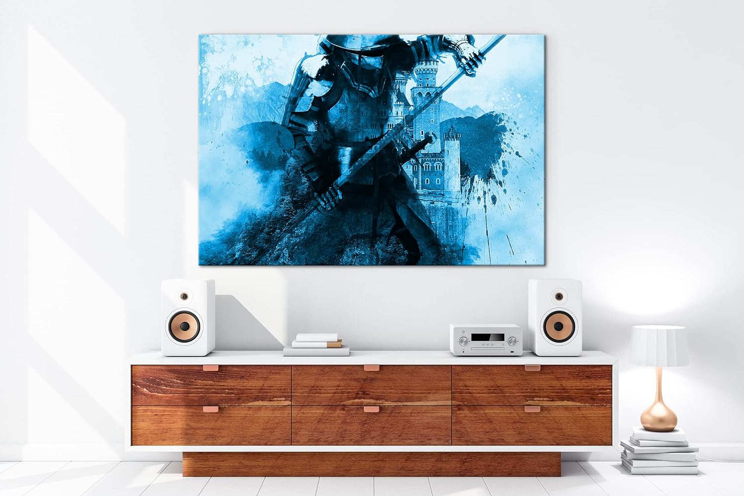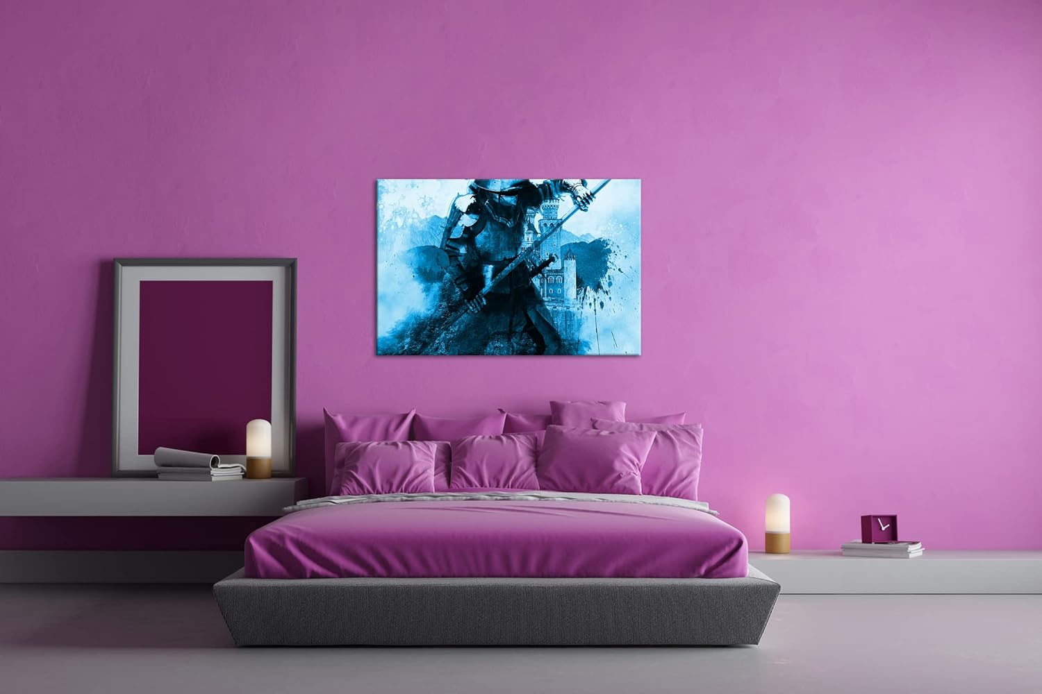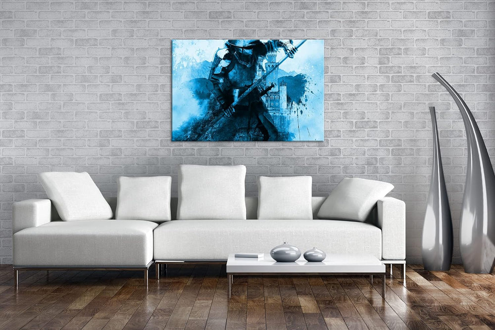 deyoli Mittelalter - Illustration Format: 80x60 Effekt: Monocrome Blau als Leinwandbild, Motiv ferti