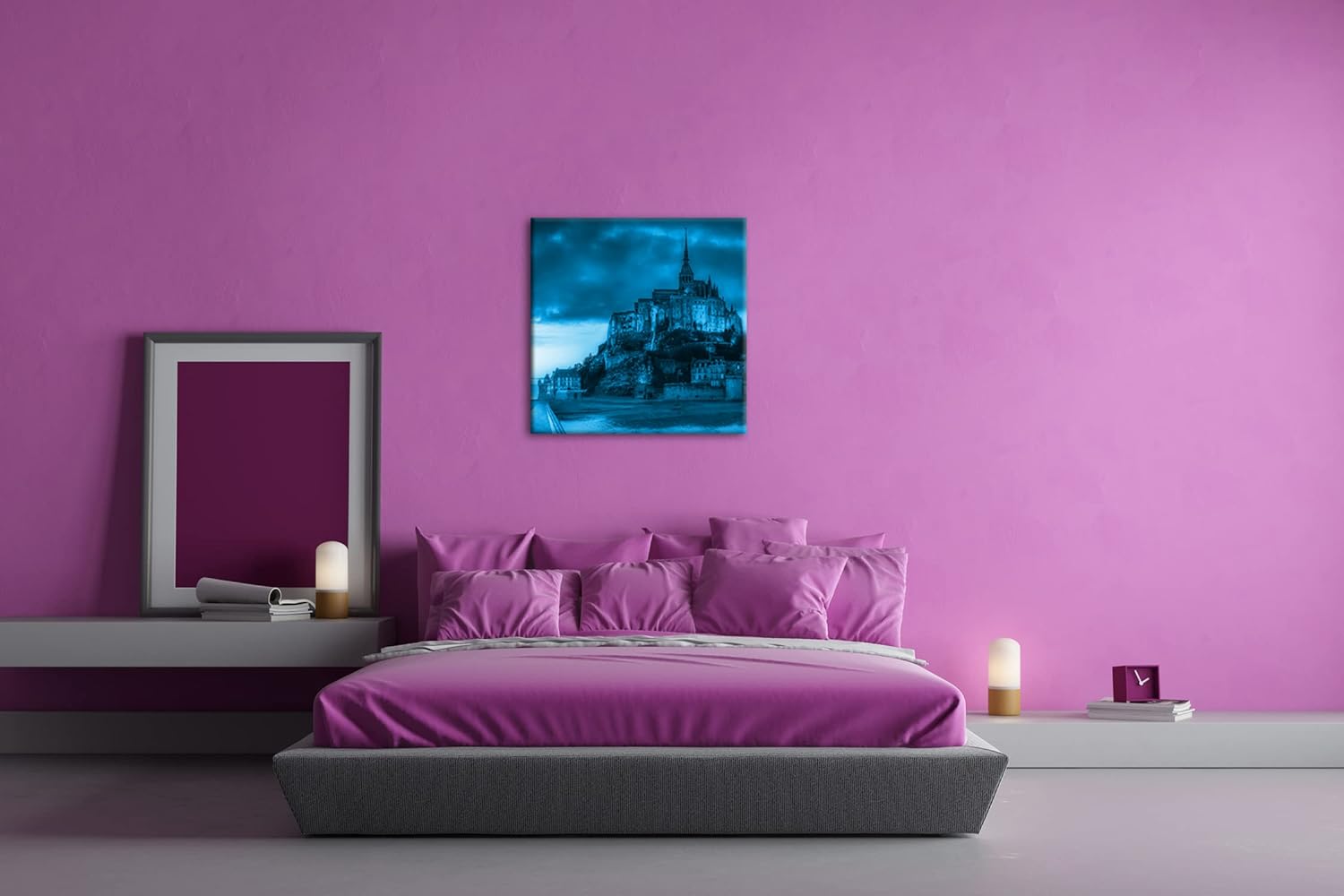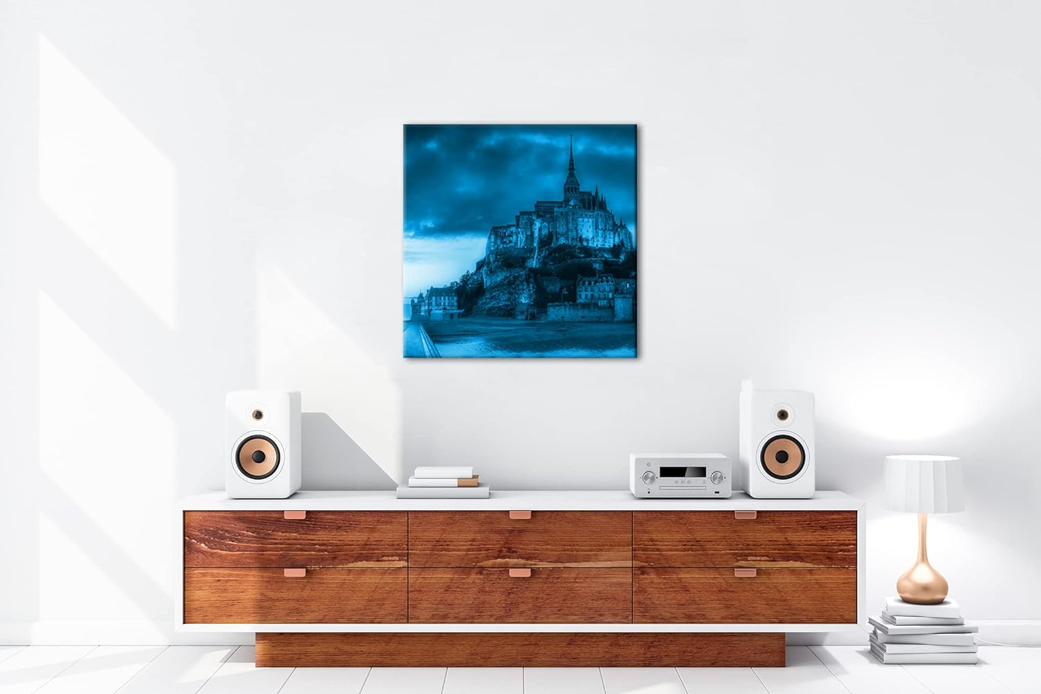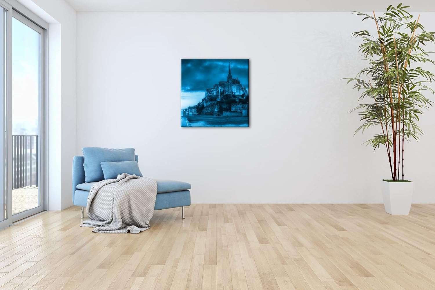 deyoli Mont St Michel bei Sonnenuntergang Format: 70x70 Effekt: Monocrome Blau als Leinwandbild, Mot