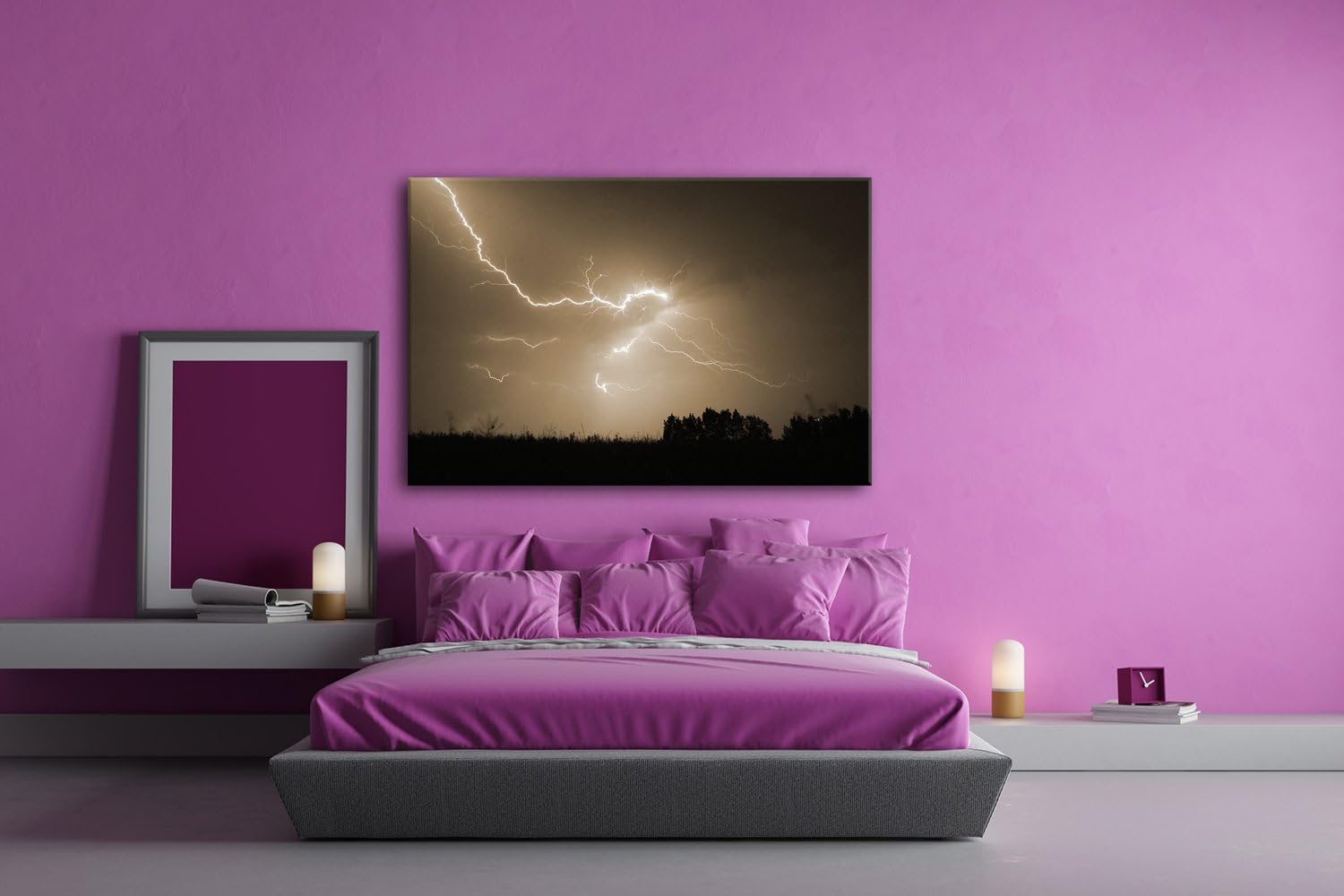deyoli naturgewaltiger Blitz Format: 80x60 Effekt: Sepia als Leinwandbild, Motiv fertig gerahmt auf