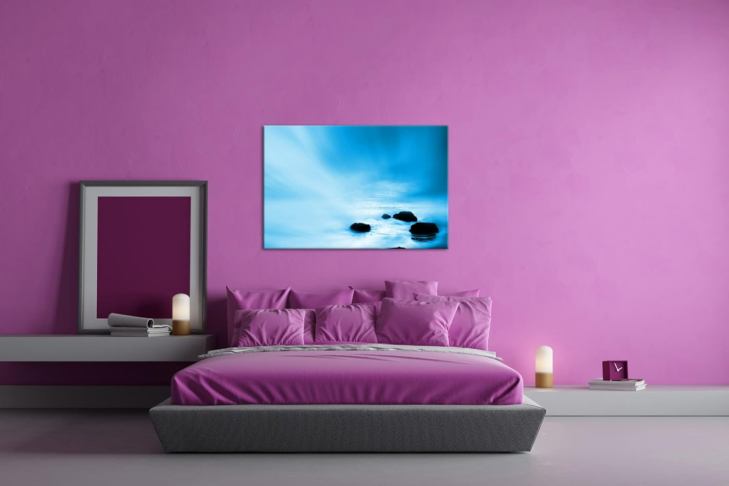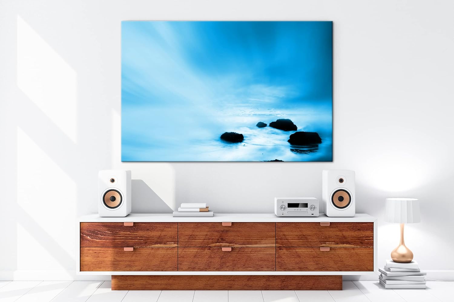 deyoli neblischer Sandstrand Format: 100x70 Effekt: Monocrome Blau als Leinwand, Motiv fertig gerahm