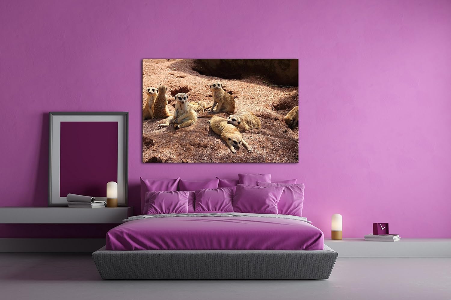 deyoli niedliche Erdmännchen Familie im Format: 80x60 als Leinwandbild, Motiv fertig gerahmt auf Ech