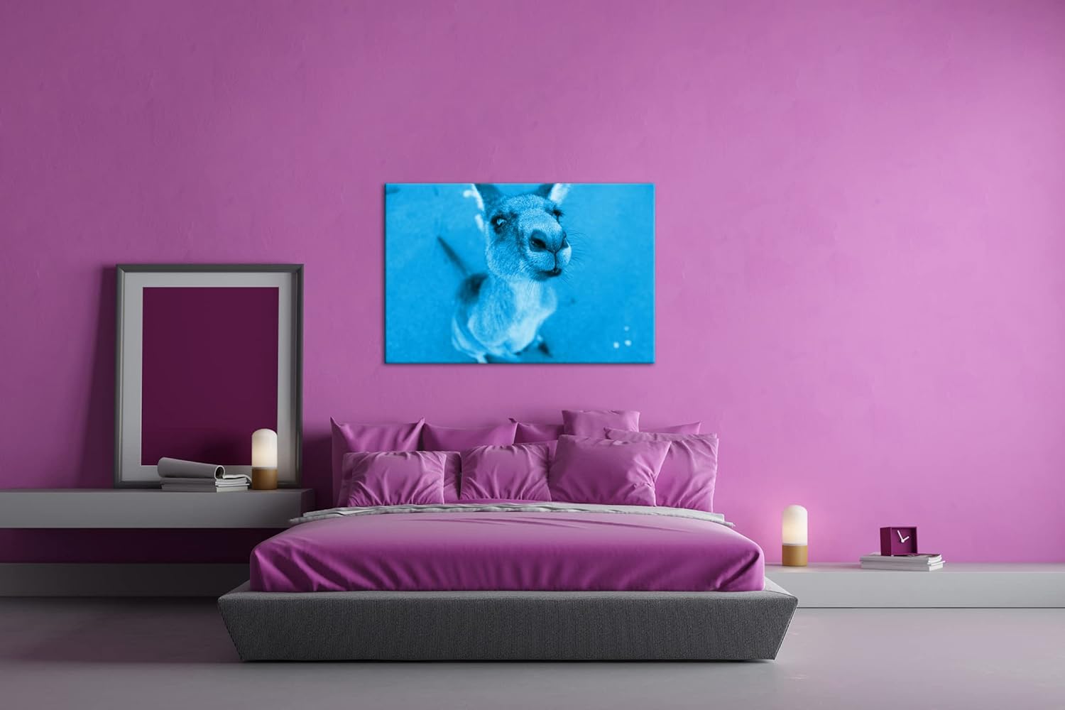 deyoli niedliches Känguru Format 80x60 Effekt: Monocrome Blau als Leinwandbild, Motiv fertig gerahmt