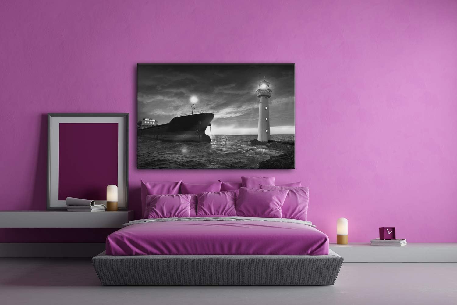 deyoli Orangener Himmel am Hafen Format: 60x40 Effekt: Schwarz&Weiss als Leinwand, Motiv fertig gera
