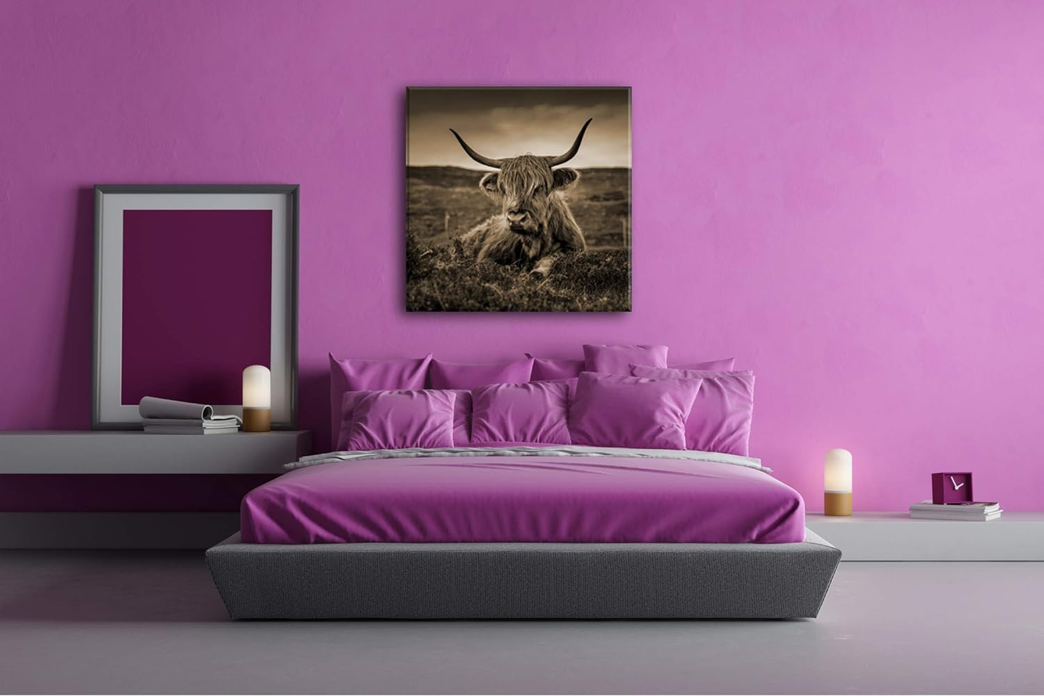 deyoli pelziges Rind auf schottischer Landschaft im Format: 60x60 Effekt: Sepia als Leinwandbild, Mo