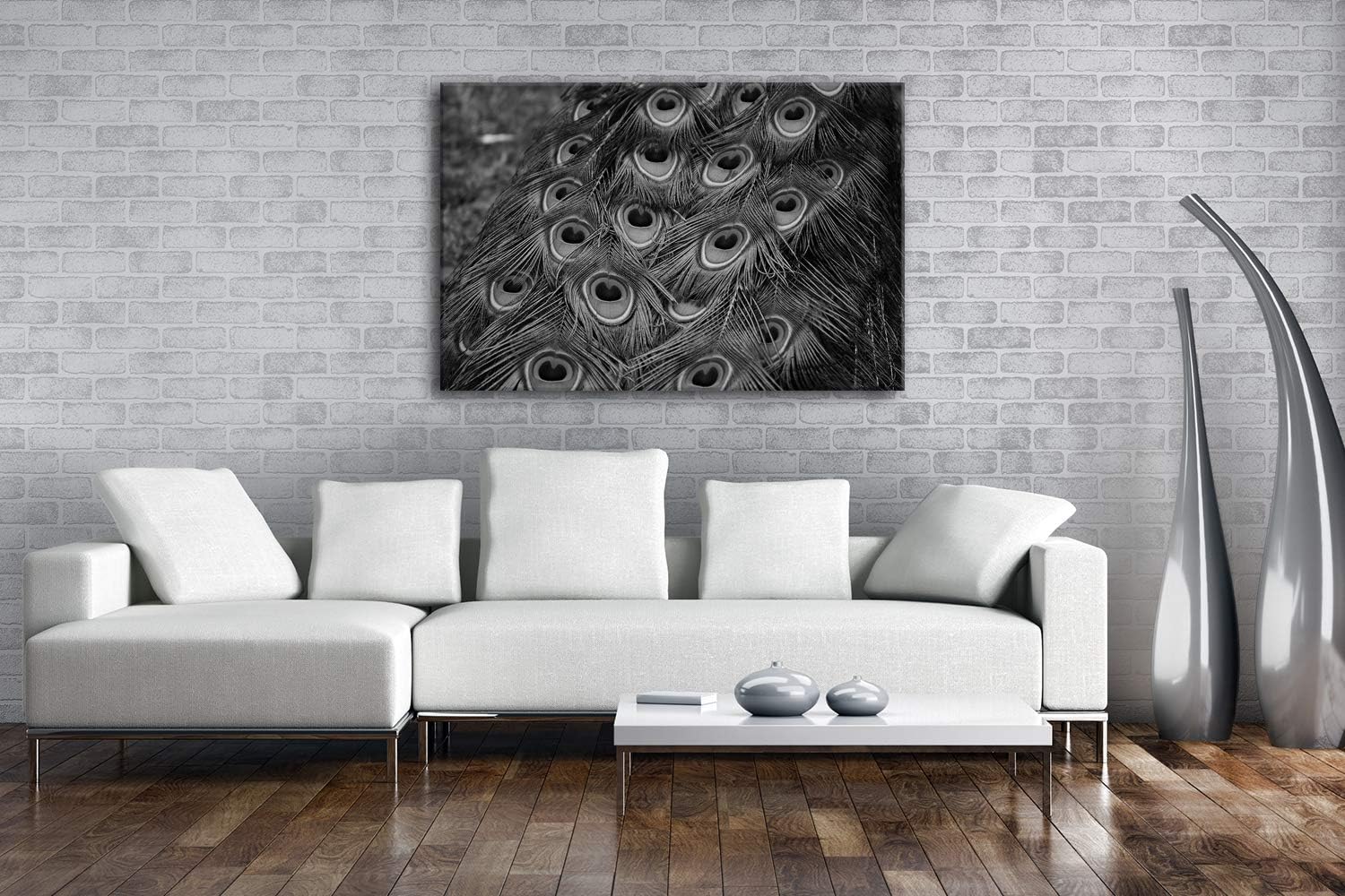 deyoli Pfauenfedern Format: 100x70 Effekt: Schwarz&Weiss als Leinwandbild, Motiv fertig gerahmt auf